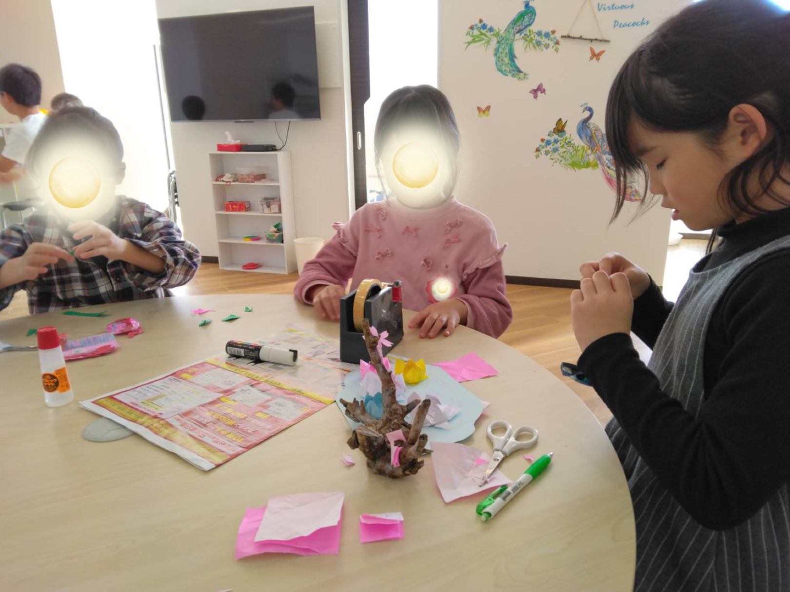 以前に拾っておいた木を使って、キレイな桜の木もできました!