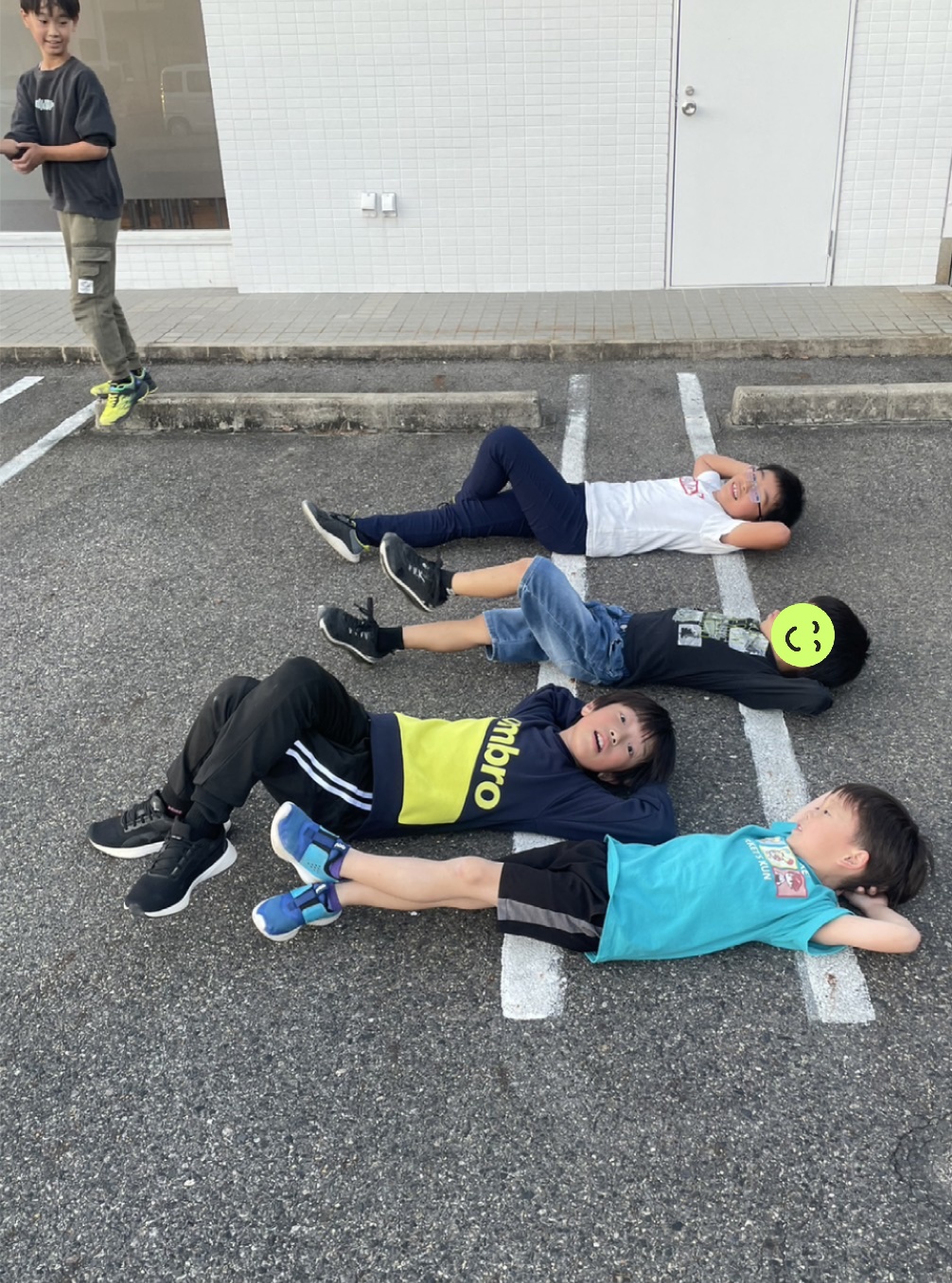 鬼がなかなか来ないので、寝っ転がっている男の子たち…