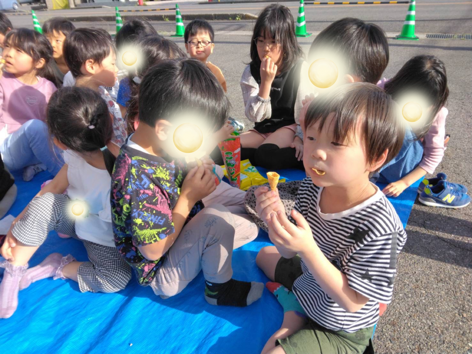 今日は特別にブルーシートを敷いて外でのおやつタイム!!