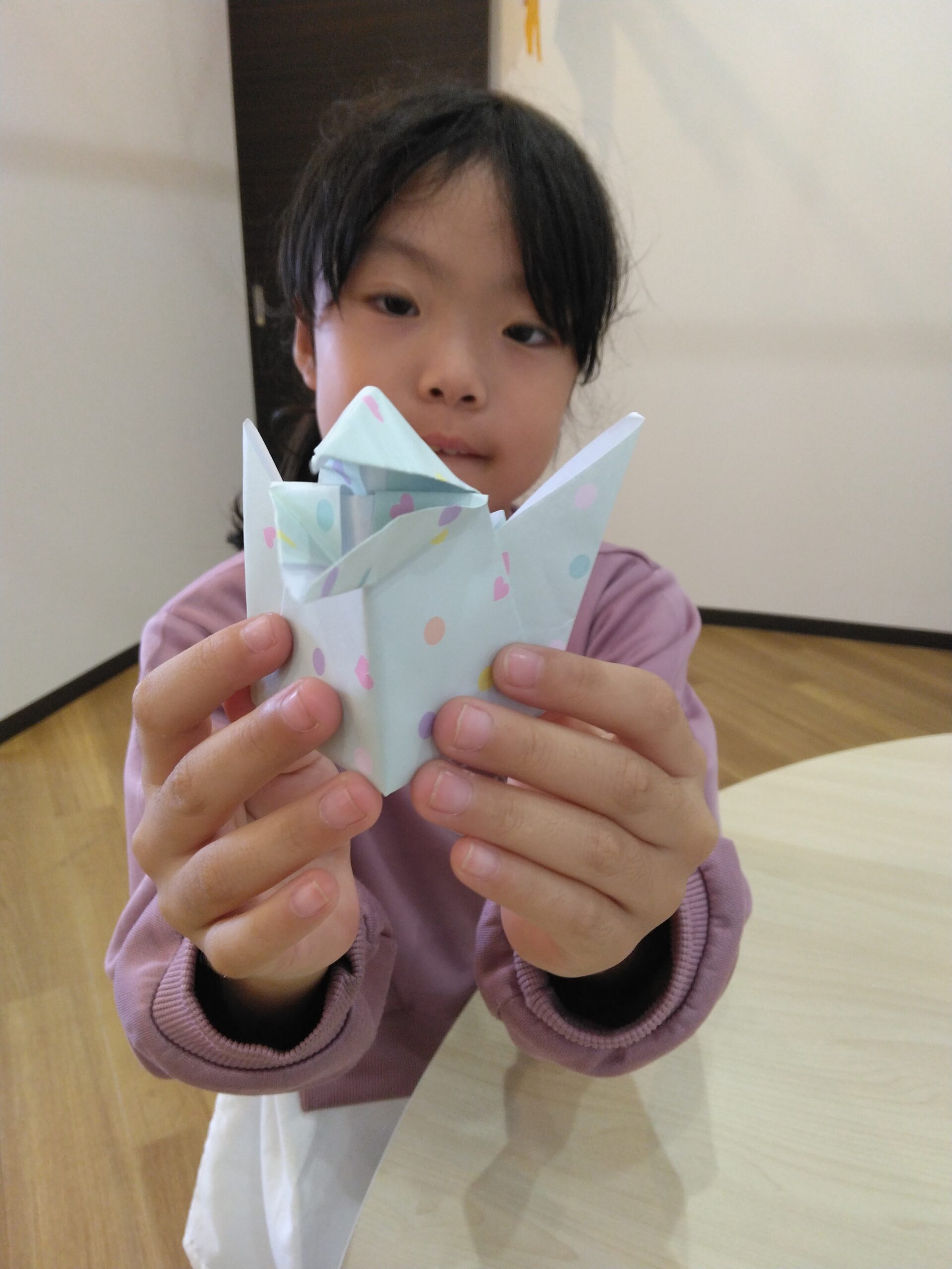 「見てみて先生!ぱくぱくカラスが折れたよ!!」
