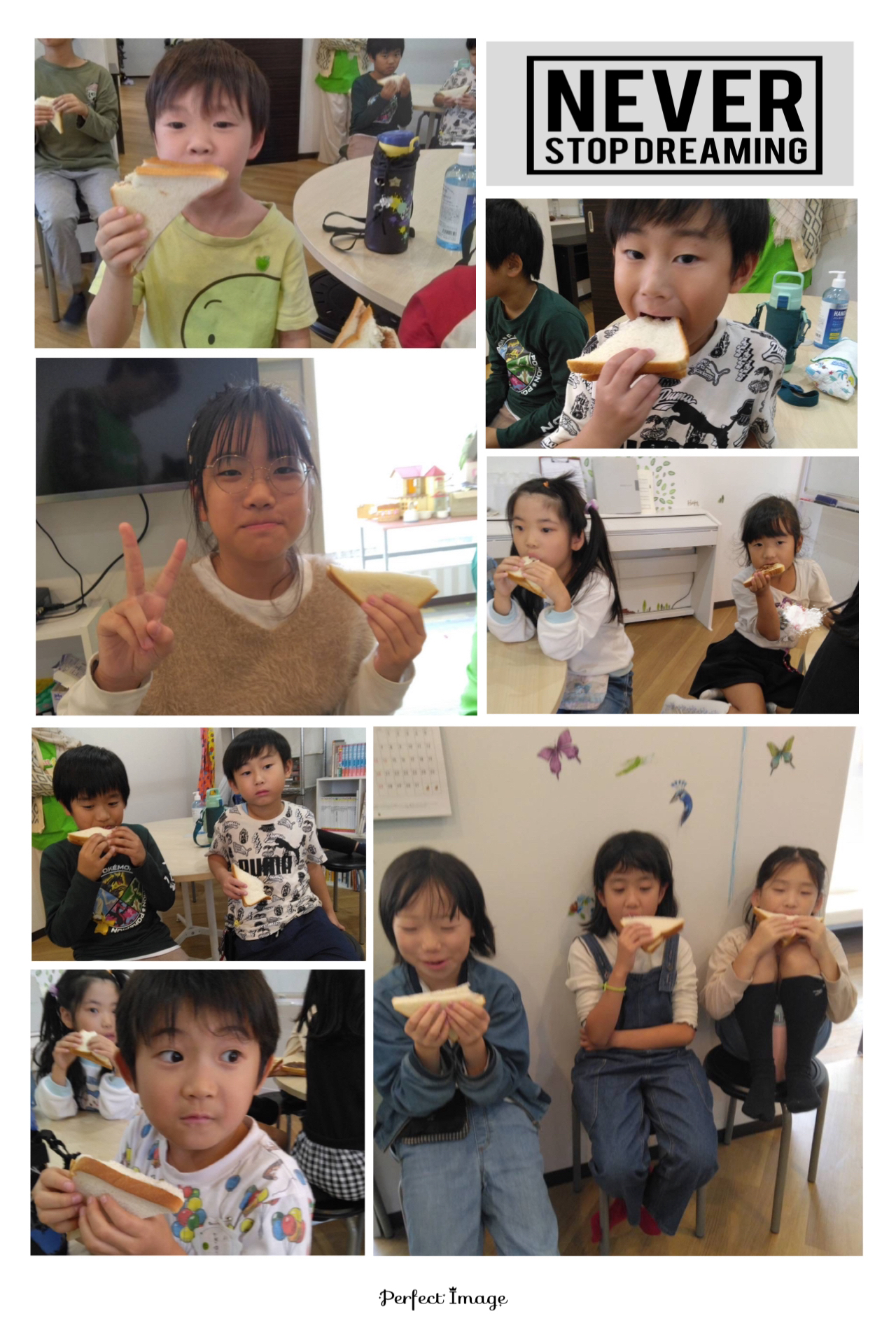 2枚合わせたパンを一緒に食べるお友だちの隣では、一枚ずつ交互に違う味を楽しむお友だちも😄