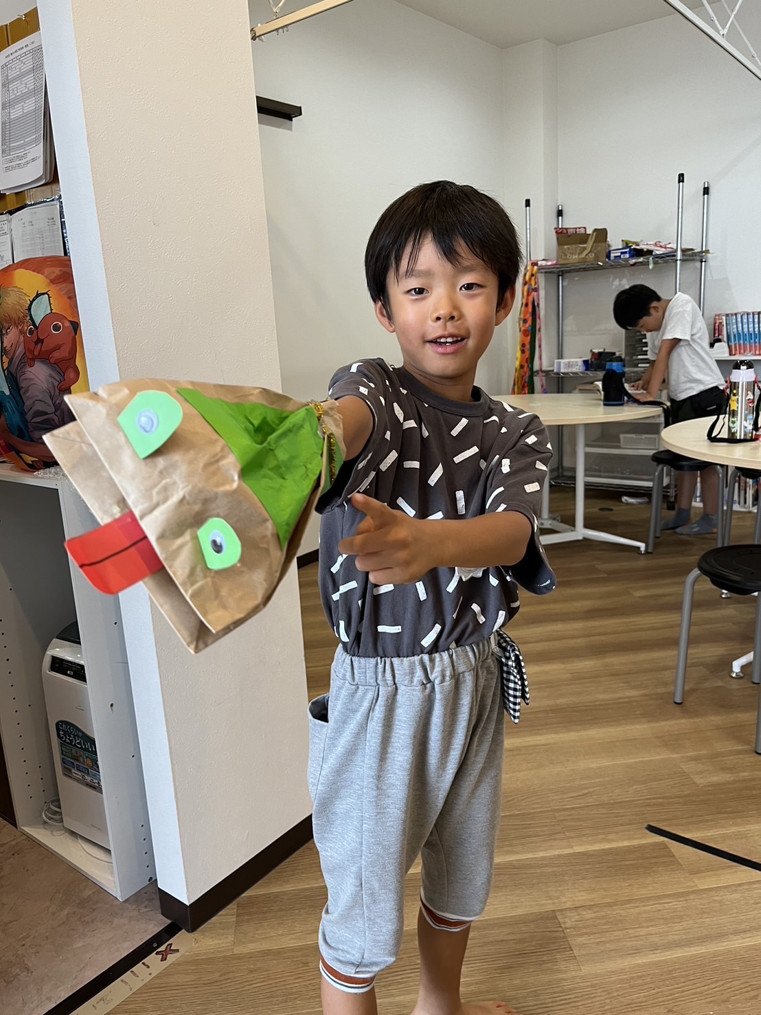 1年生はパクパク人形を作ったようですよ。