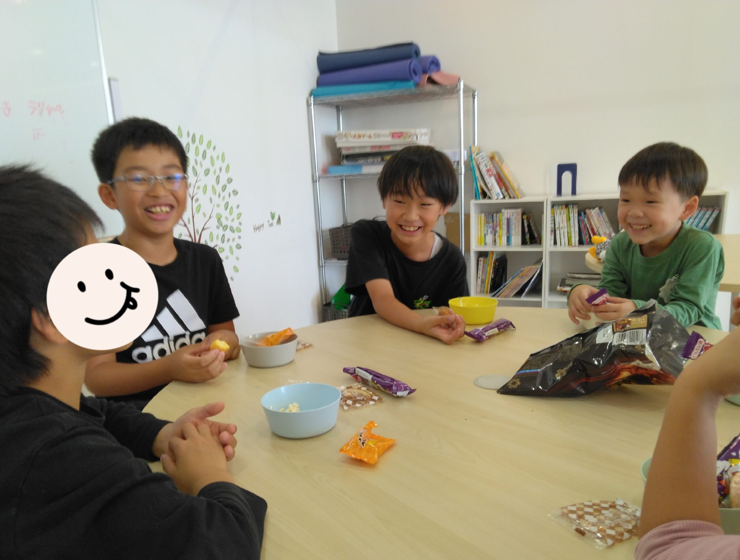 宿題のあとは、みんなでおやつを「いただきまーす!」