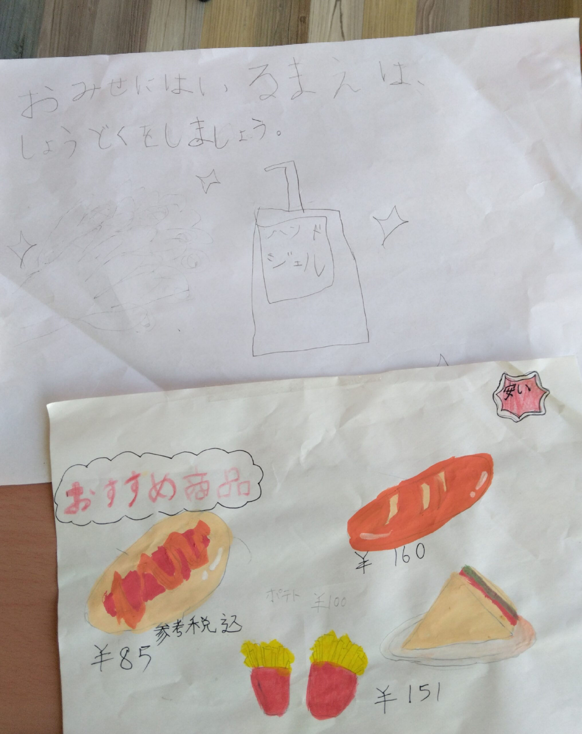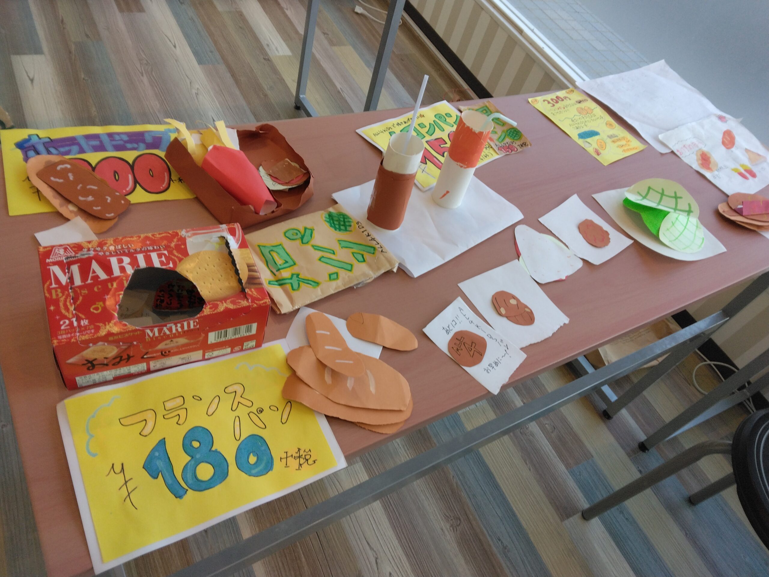 そのあとは昨日の続きでパン屋さんごっこの準備です。