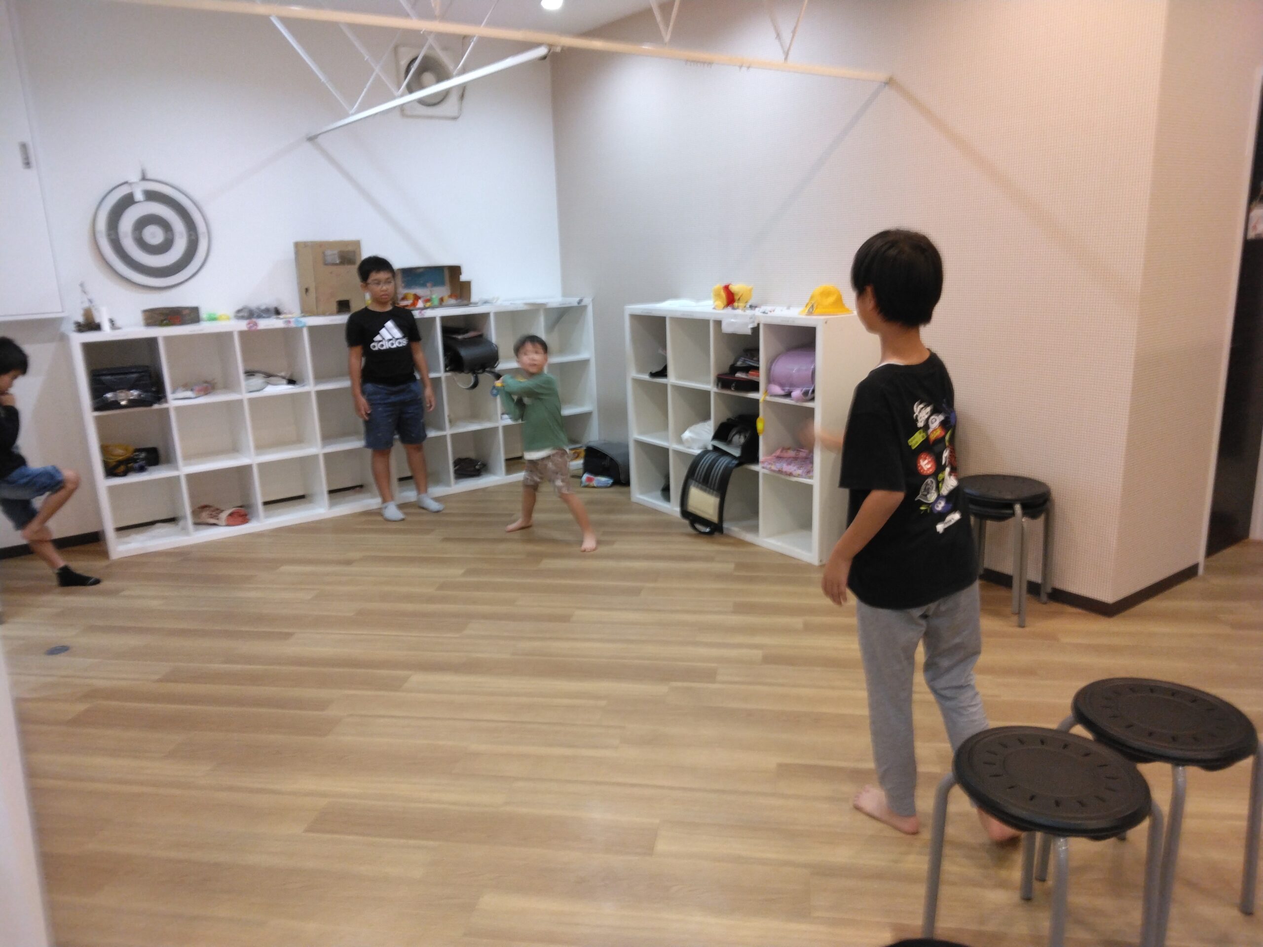 ひと段落したあとは、9マス鬼ごっこやバッティングをして遊んだり