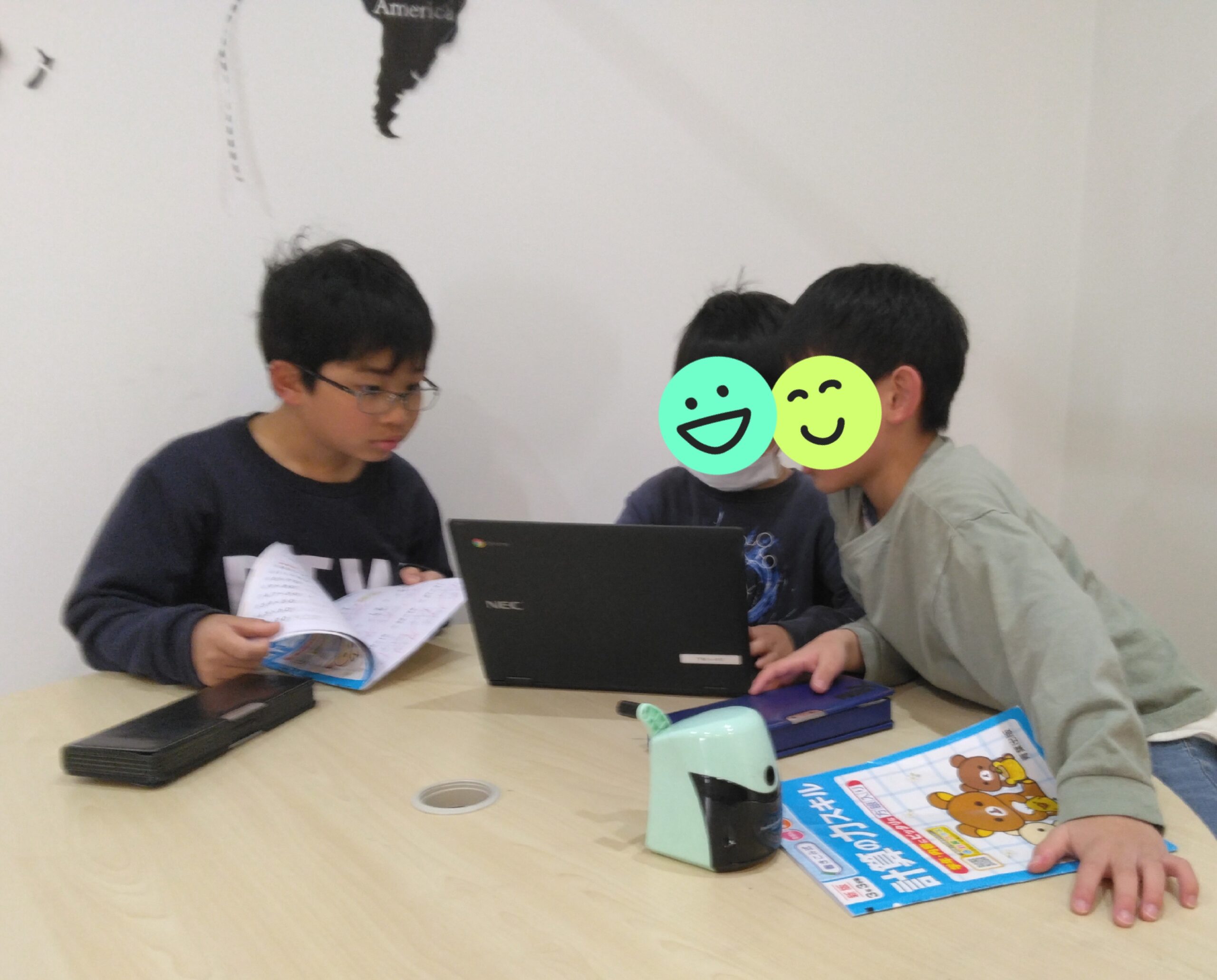 と、自分の宿題よりお友だちの宿題の方が気になってしまう子ども達です…😊