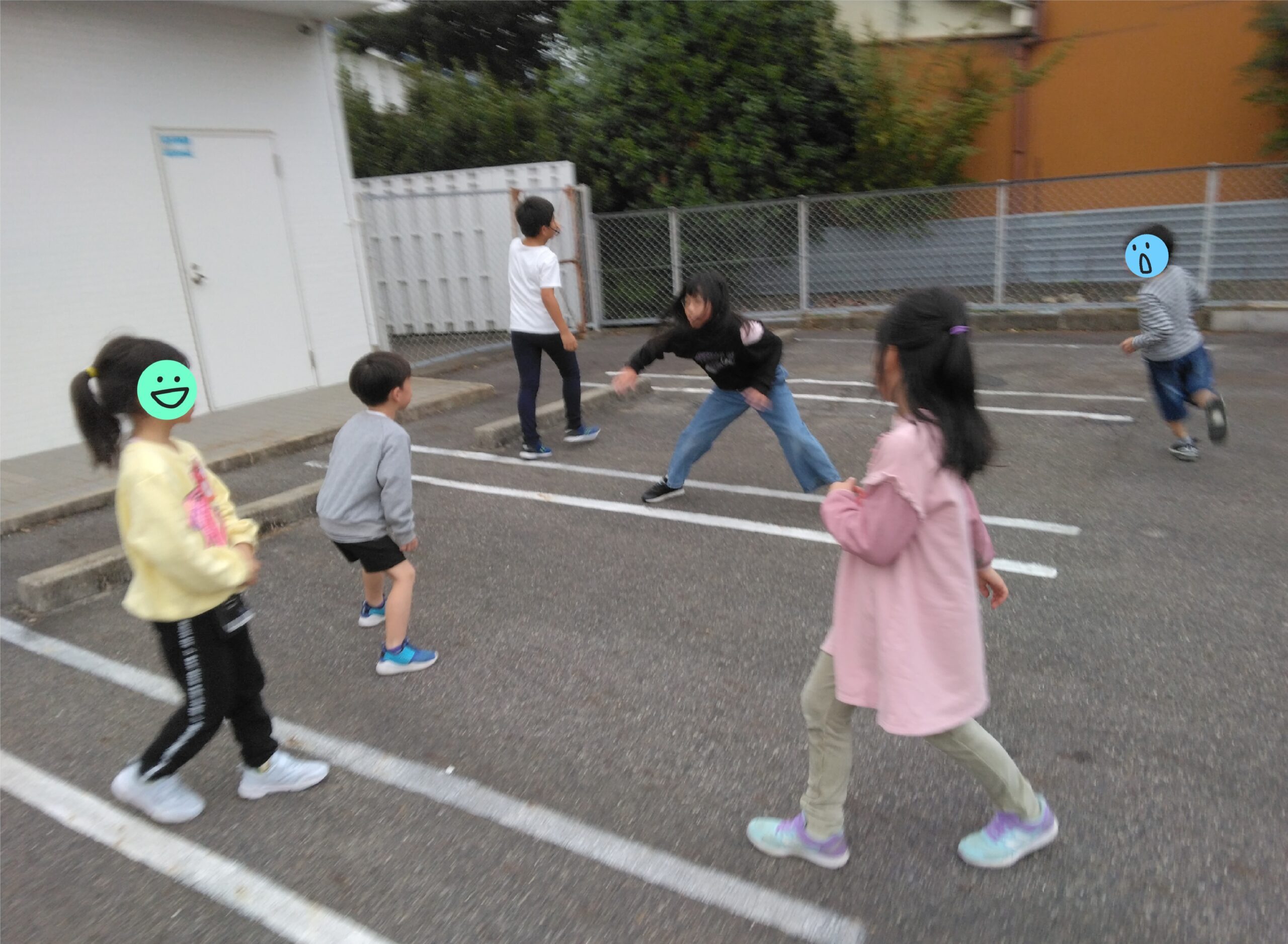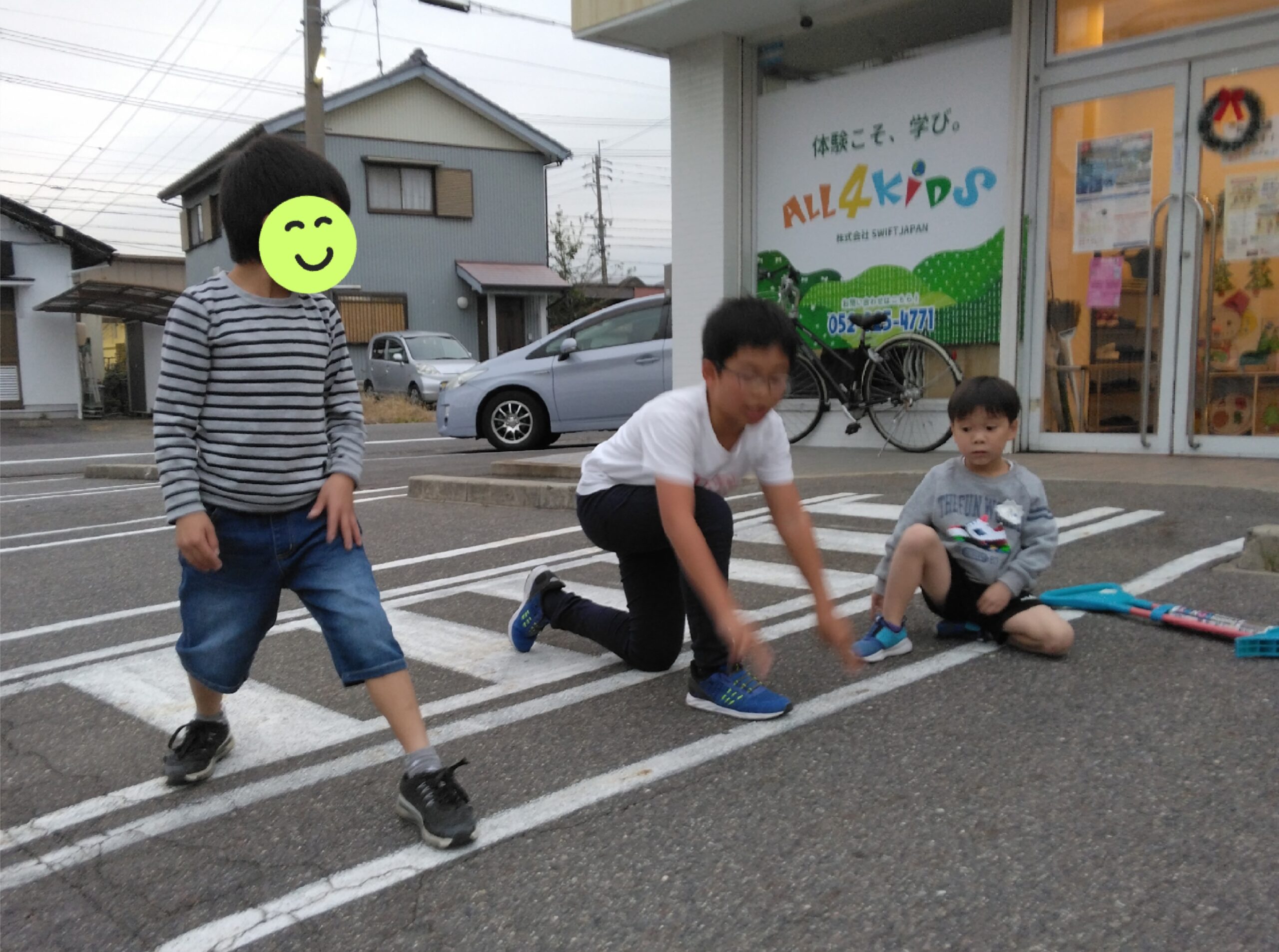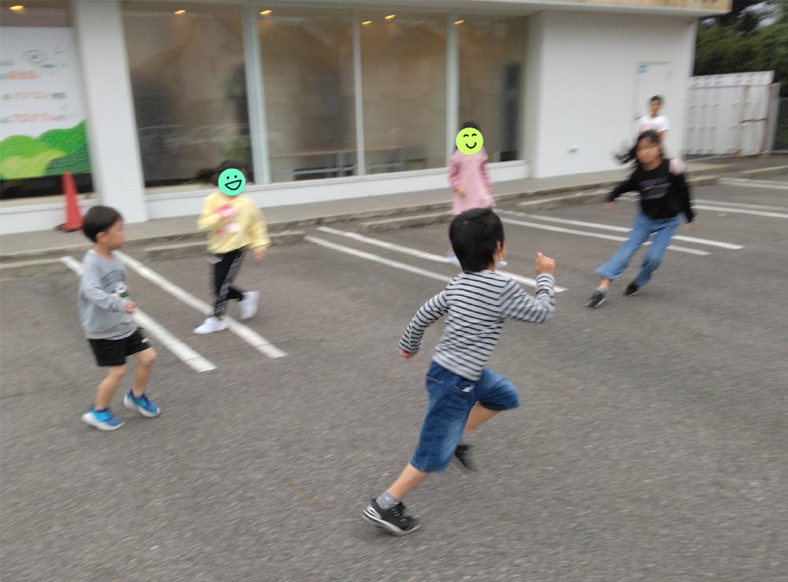 今日は午後から曇空でしたが、子ども達のリクエストに応えて、駐車場で遊ぶことになりました!
