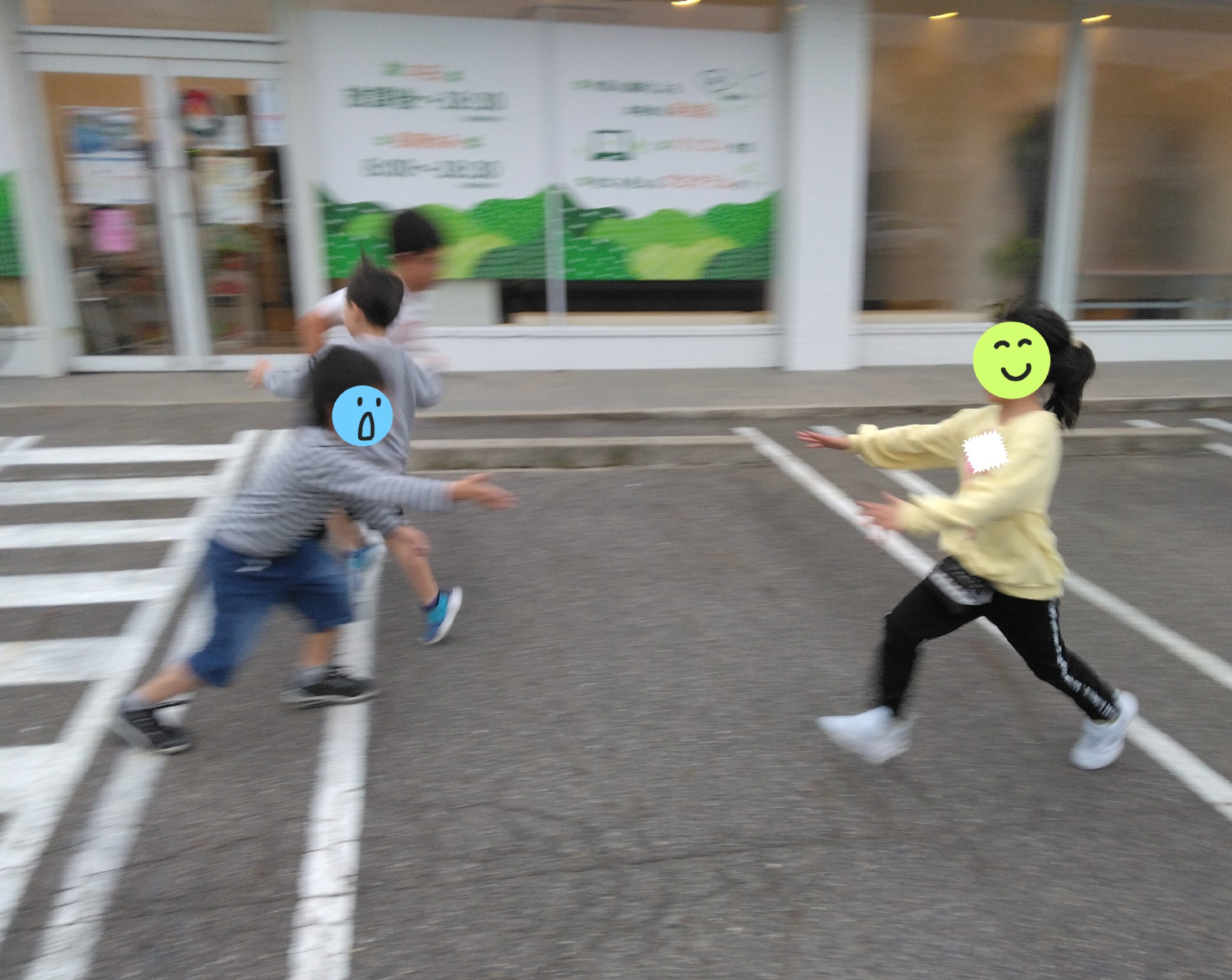 鬼に囲まれても、すばしっこい男の子はとっても上手に鬼から逃げていましたよ!