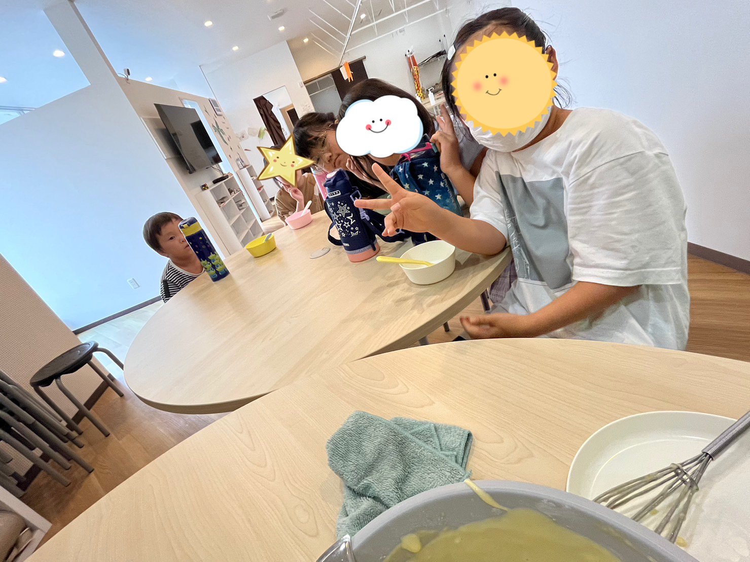 子ども達と上手にホットプレートに落としました。