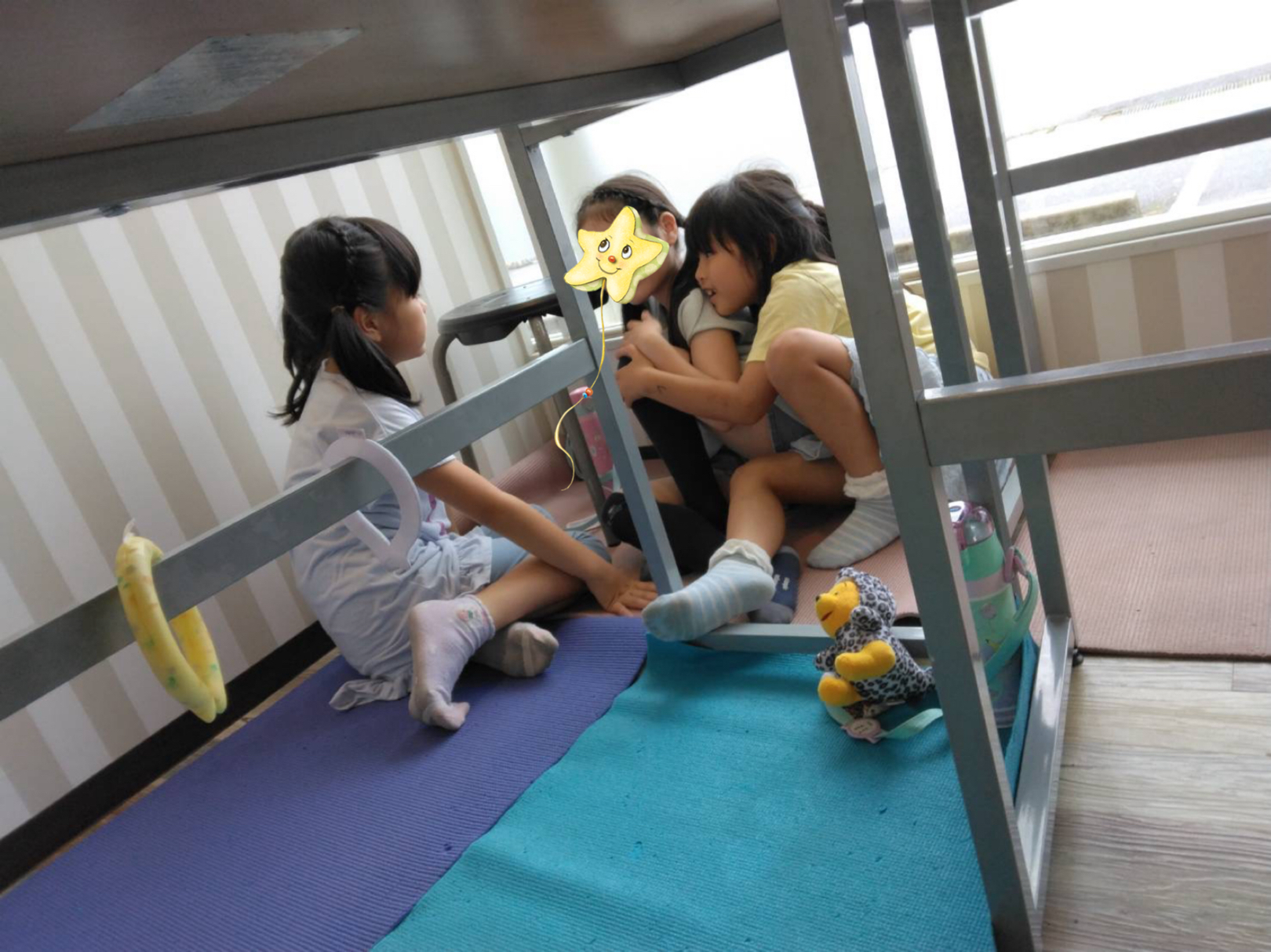 最近、狭い所が楽しいようで、何だかお喋りしたり、ごっこ遊びをしています。
