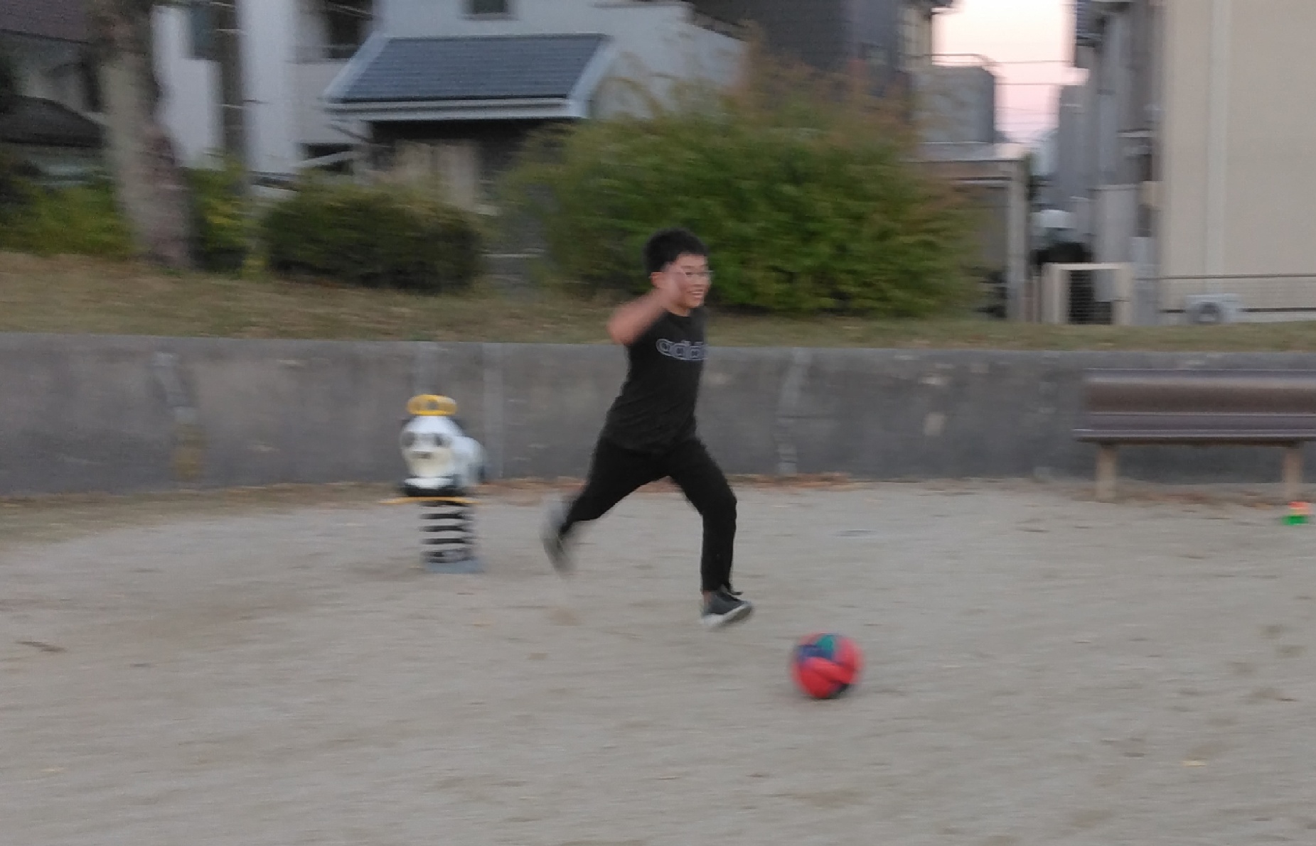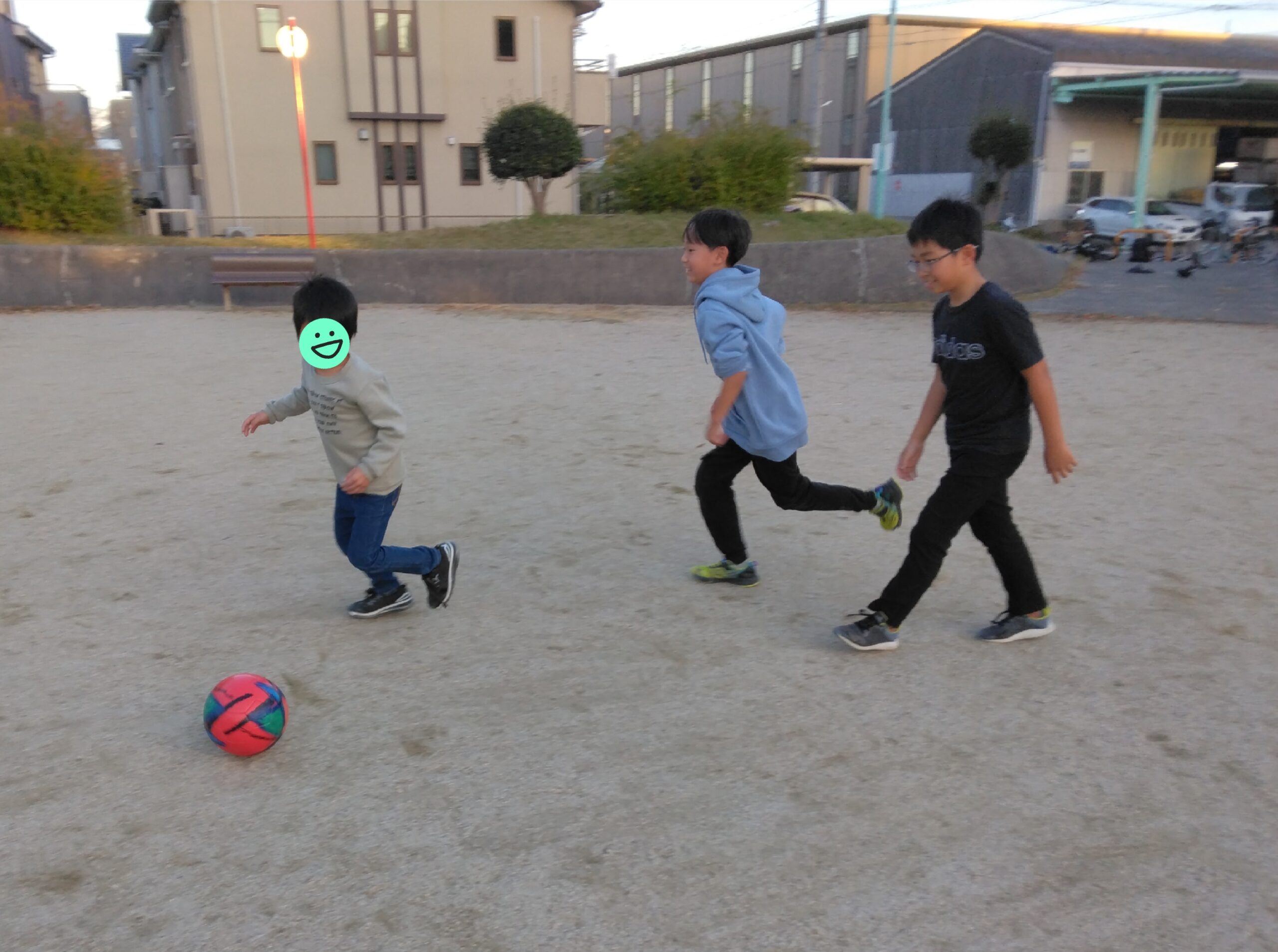 男の子たちは早速、サッカーごっこを始めています!
