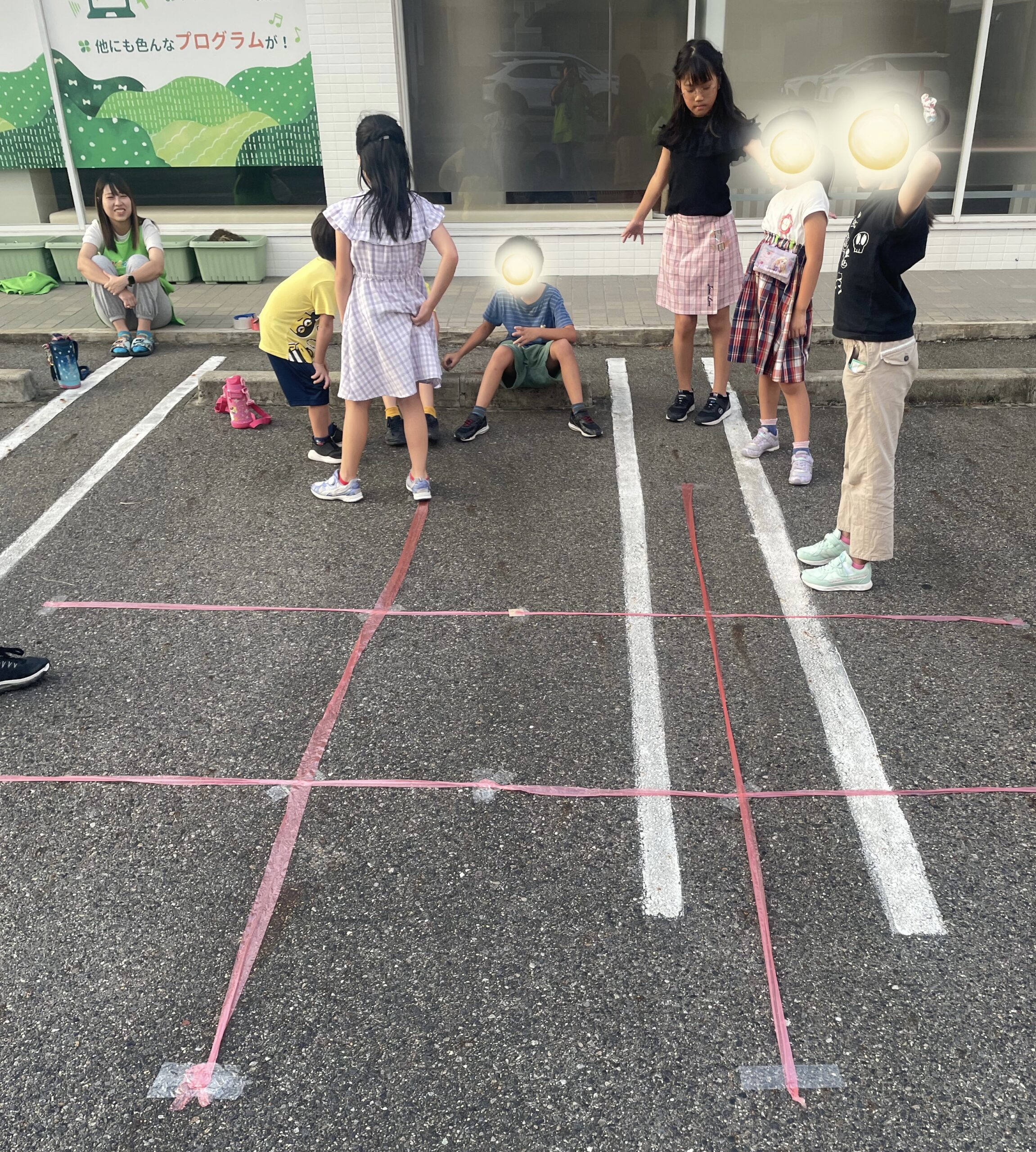 この9マスを使って3拍子のリズムでマスを移動します鬼と同じマスになったら、負けです。