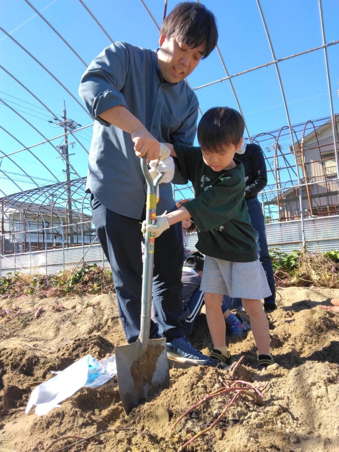 せーのっ!お父さんと力を合わせて土を掘っていきます😆