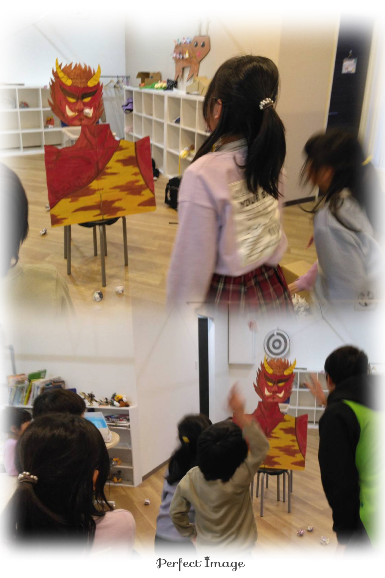 その後は子供たちから「豆まきでやったゲームがやりたい!」とのリクエストで、再び赤鬼👹が登場❗️