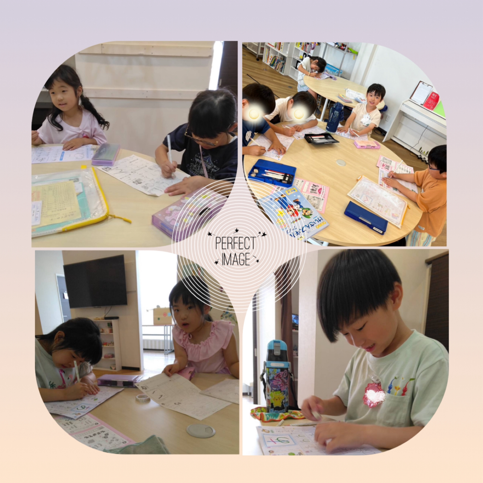 などとおしゃべりをしながら、お友だちと楽しく宿題📕をする一年生です😊