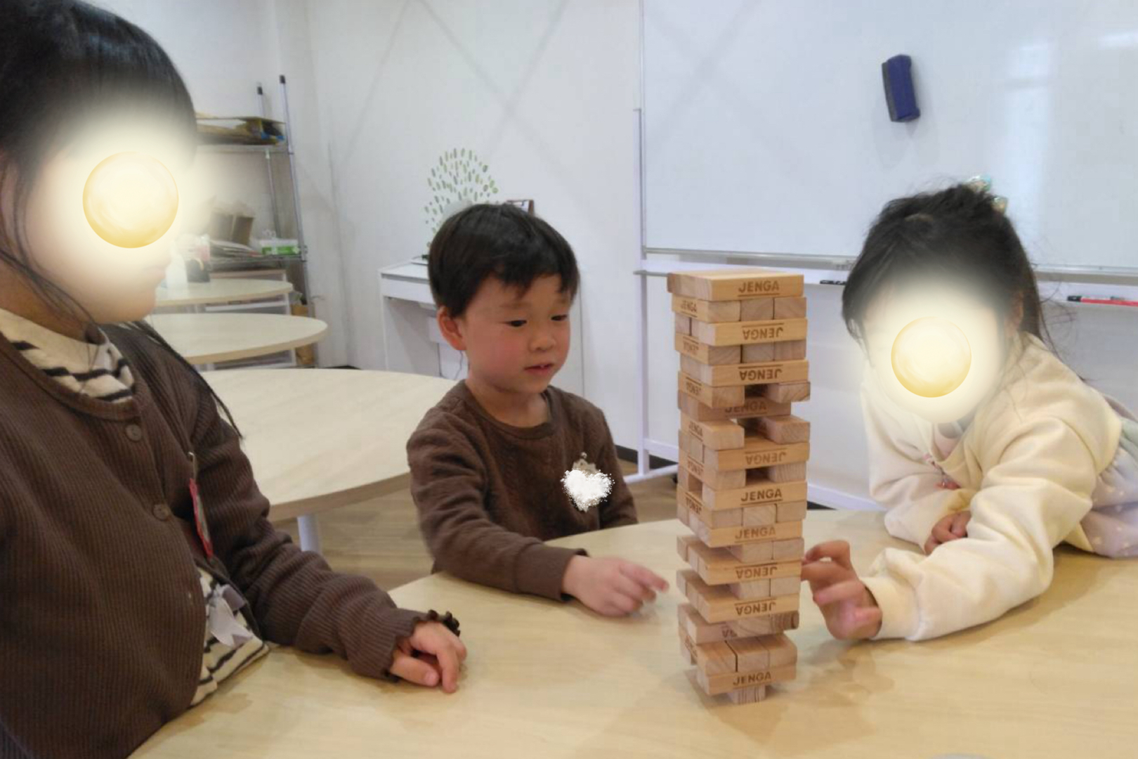 大胆に下の方から攻めるお友だちもいれば、崩さないように慎重に取ろうとするお友だちもいてとても楽しそうです❗️