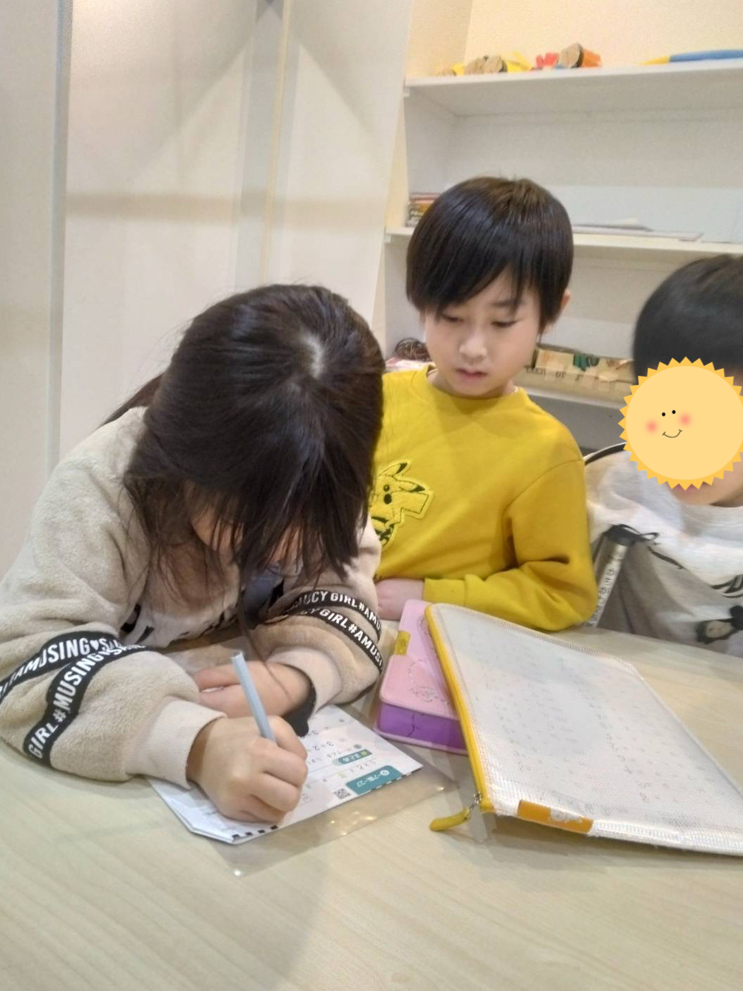 こちらのテーブルでは引き算の問題に悩んでいたお友だちに、力強い仲間が助けてくれていましたよ☺️