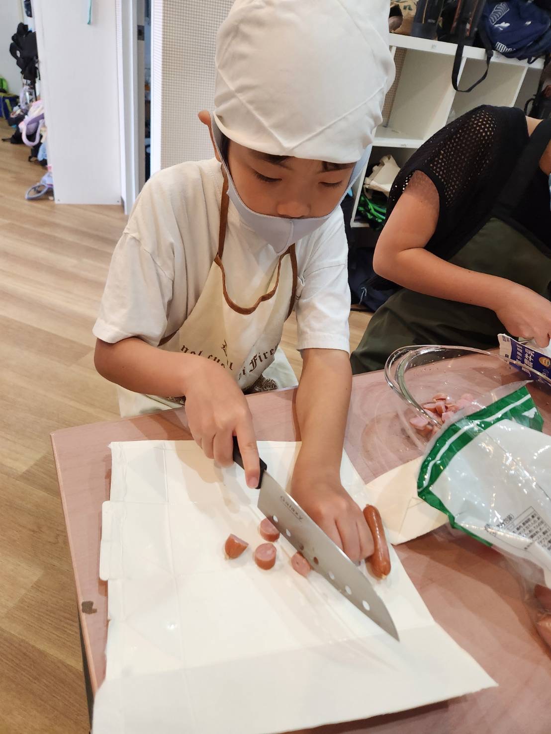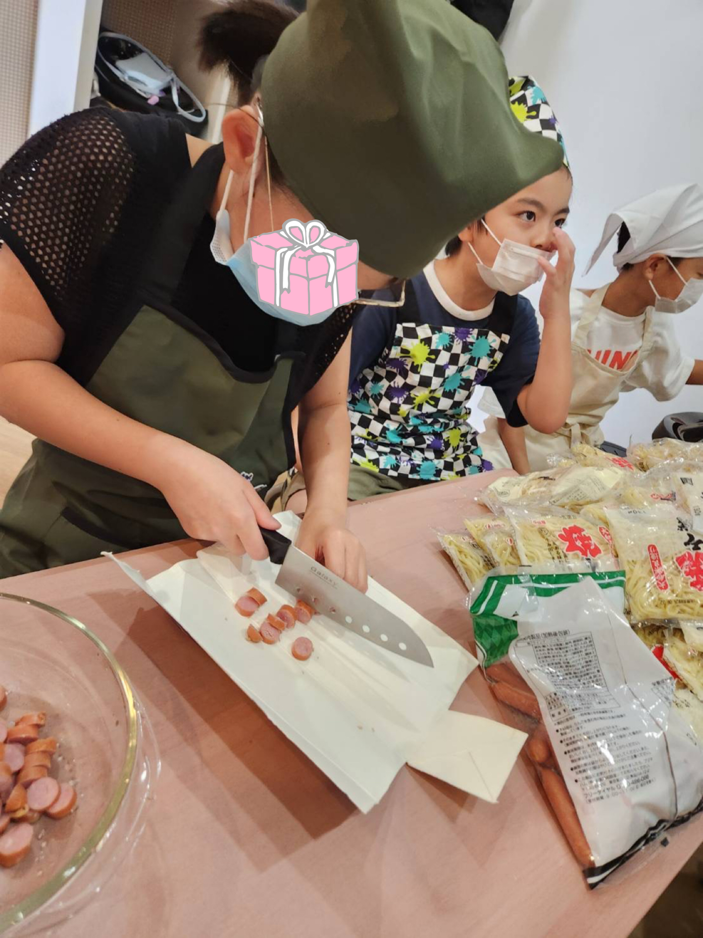 エプロンと三角巾、マスクを身につけたらクッキングスタート