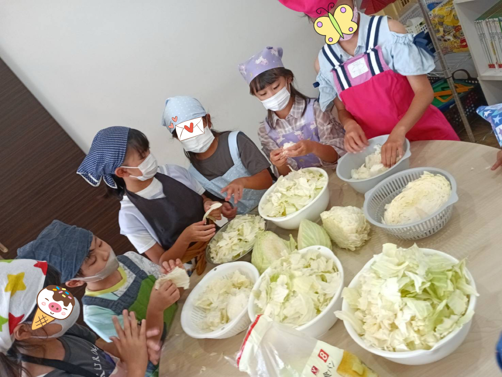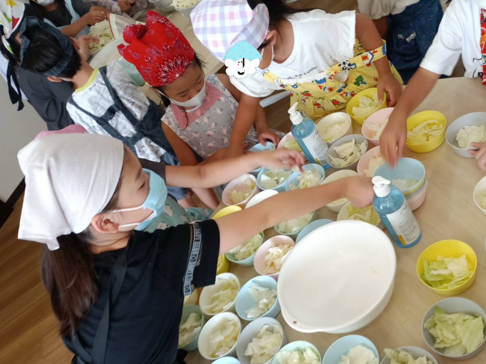 先生から今日のメニューの発表を聞いたあとでみんなの係を決めました。