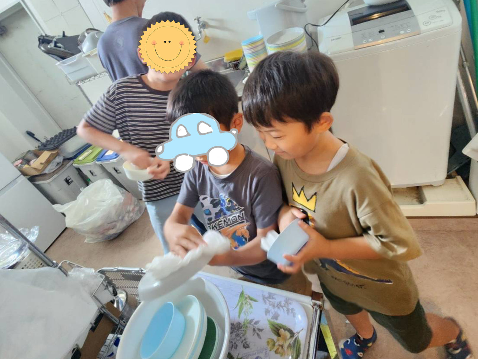 食べ終わったあとはお片付け係が頑張ってくれていました😊