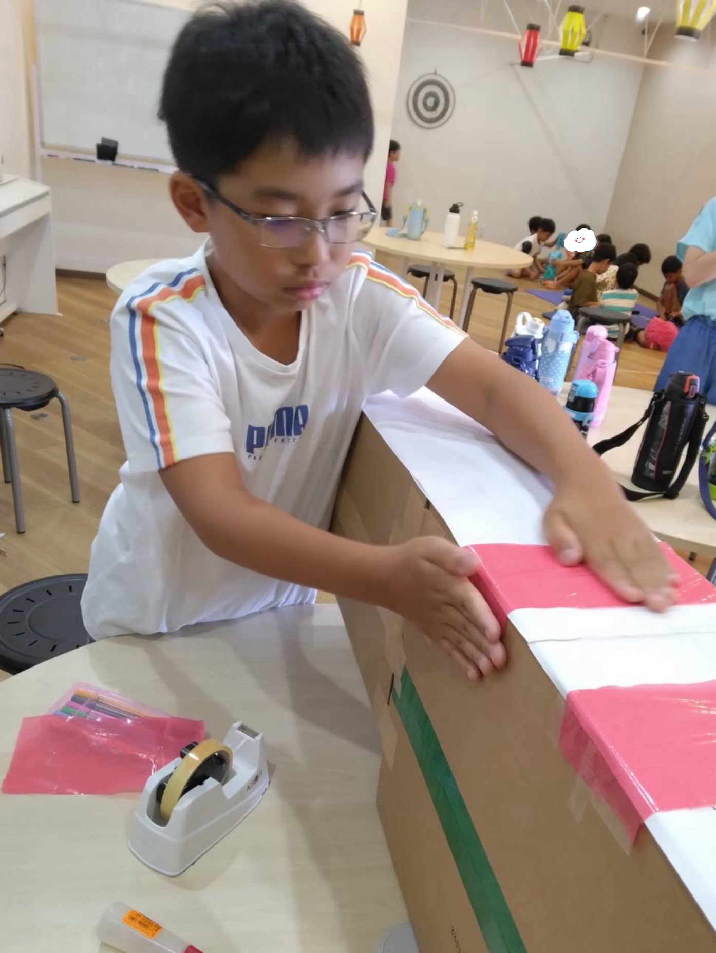 こちらでは明日の夏祭りのお店の看板を描いたり🖍️、男の子は射的用の台を頑張って作ってくれました🎯