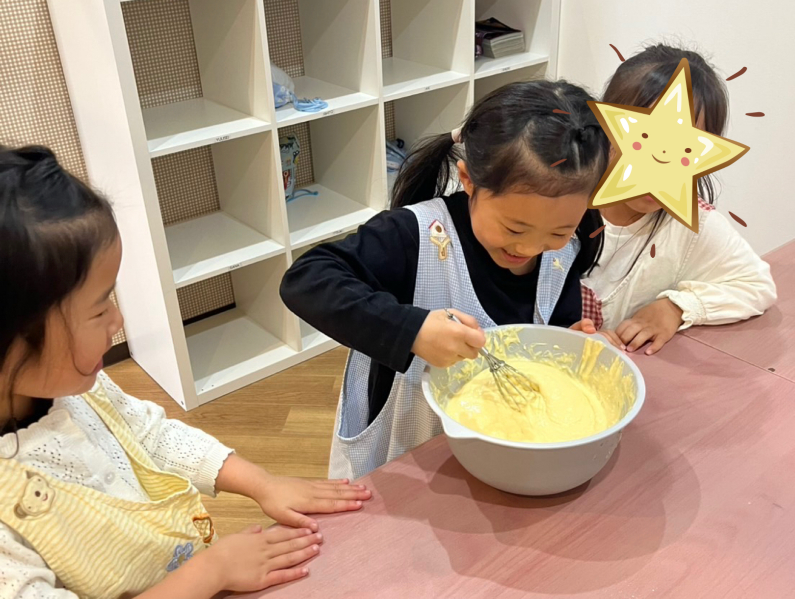 なんと、今日は一年生のお友だちが、生地作りをお手伝い😊