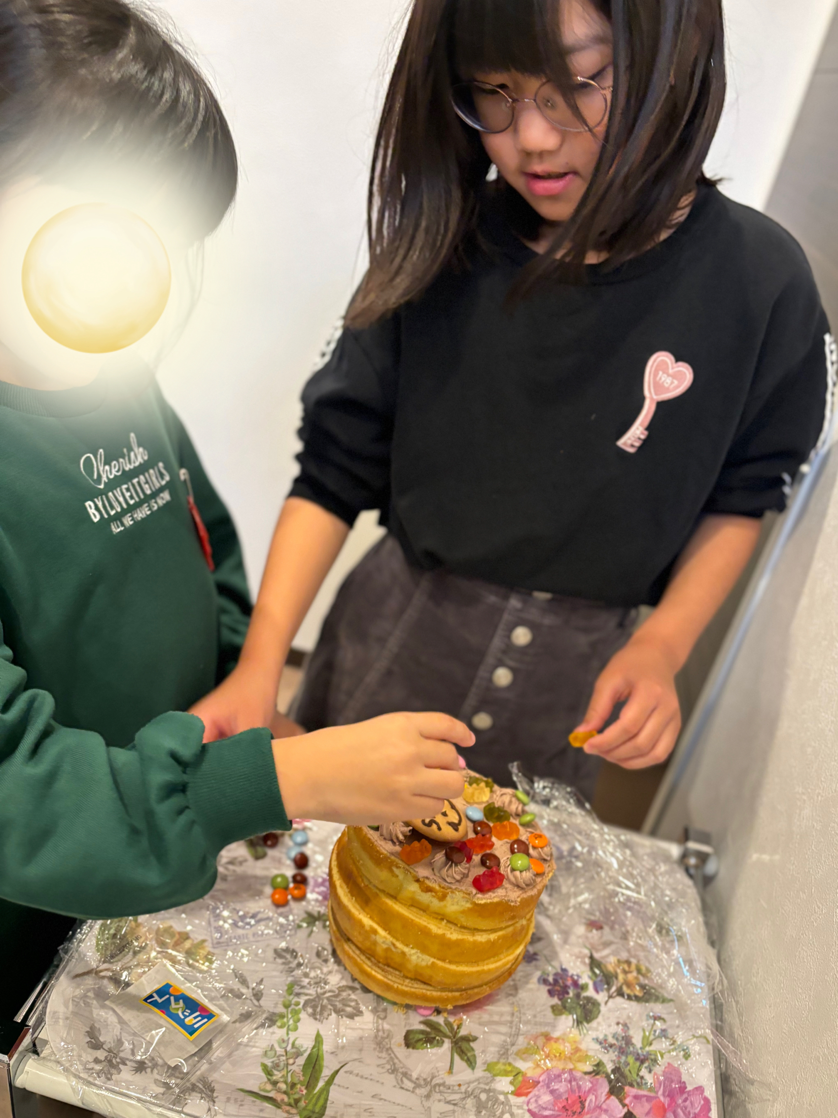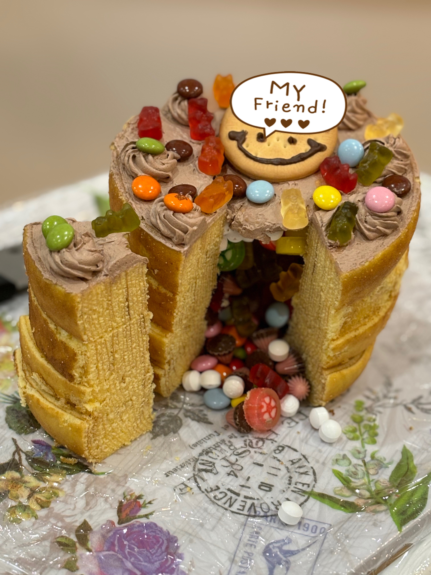 ケーキを切ると、中からカラフルなお菓子が流れだしてきて、それを見ていた子どもたちは大喜びでしたよ!☺️