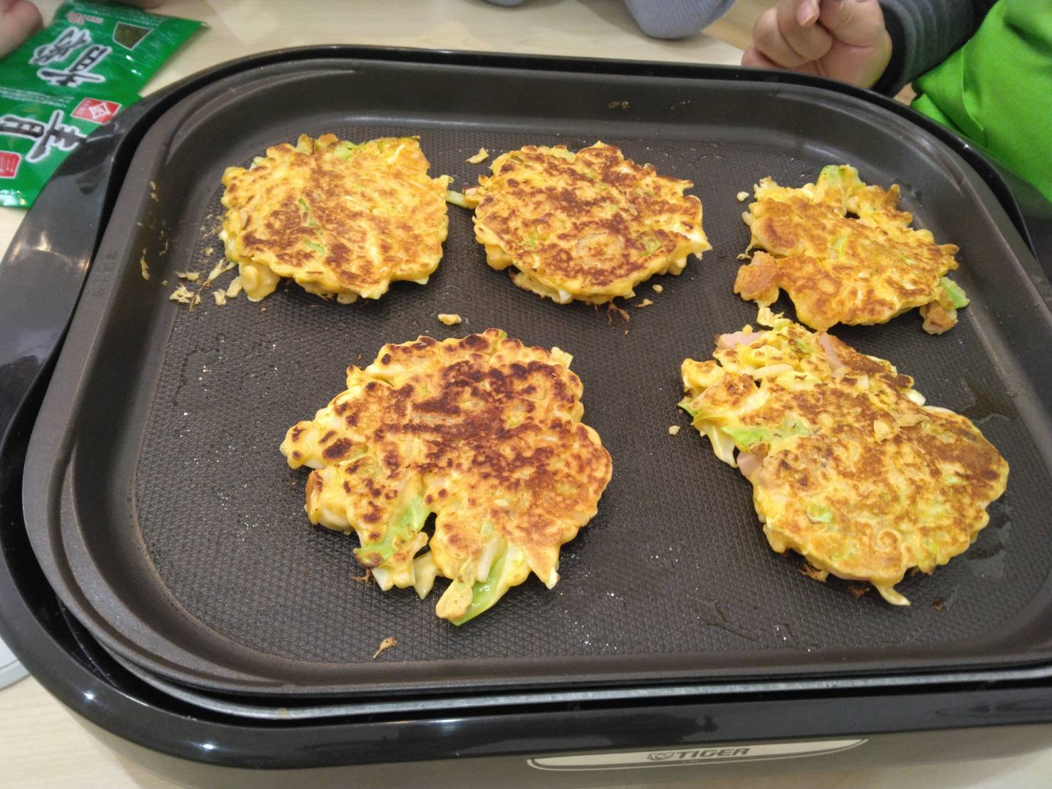 いよいよ明日で今年最後の学校ですね。 4月に開園したアフタースクールですが、すっかりみんな仲良くなり、先生たちとの信頼関係も深くなってきたのを嬉しく思う毎日です。 さて今日はおやつからご紹介です(笑) 本日はみんな大好き『お好み焼き』です。 みんなで協力して焼きました‼️ 裏返すのが少し難しそうでしたが、何度かやっていくうち上手になっていっていました……