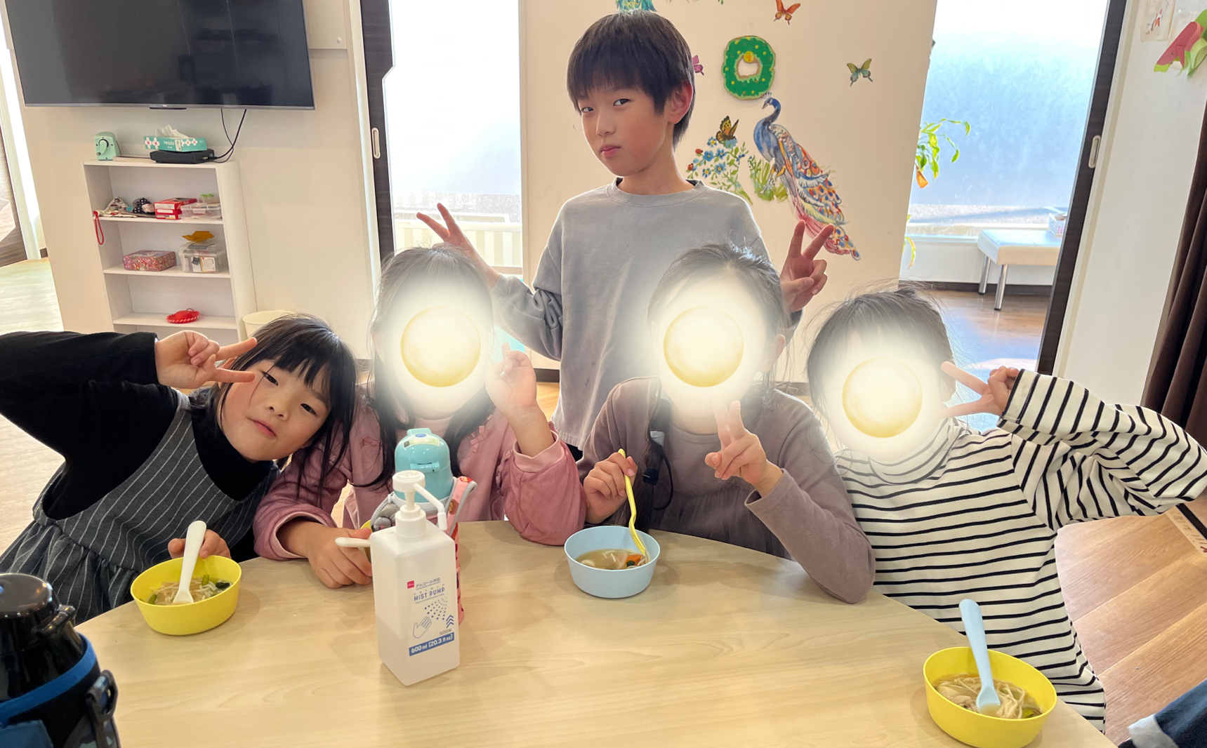 今日も朝から元気な子供たち!体を動かしたくてウズウズしているので、みんなでビーチフラッグ🚩をして遊ぶことにしました‼️ みんな頑張れ〜! お弁当を食べた後は、外に出て、走るタイムを測ったり、往復鬼ごっこをして遊びましたよ! たくさん体を動かした後はおやつタイムです! 今日は暖かいにゅう麺🍜を作ってみました‼️ どうですか?具沢山で美味しそうで……