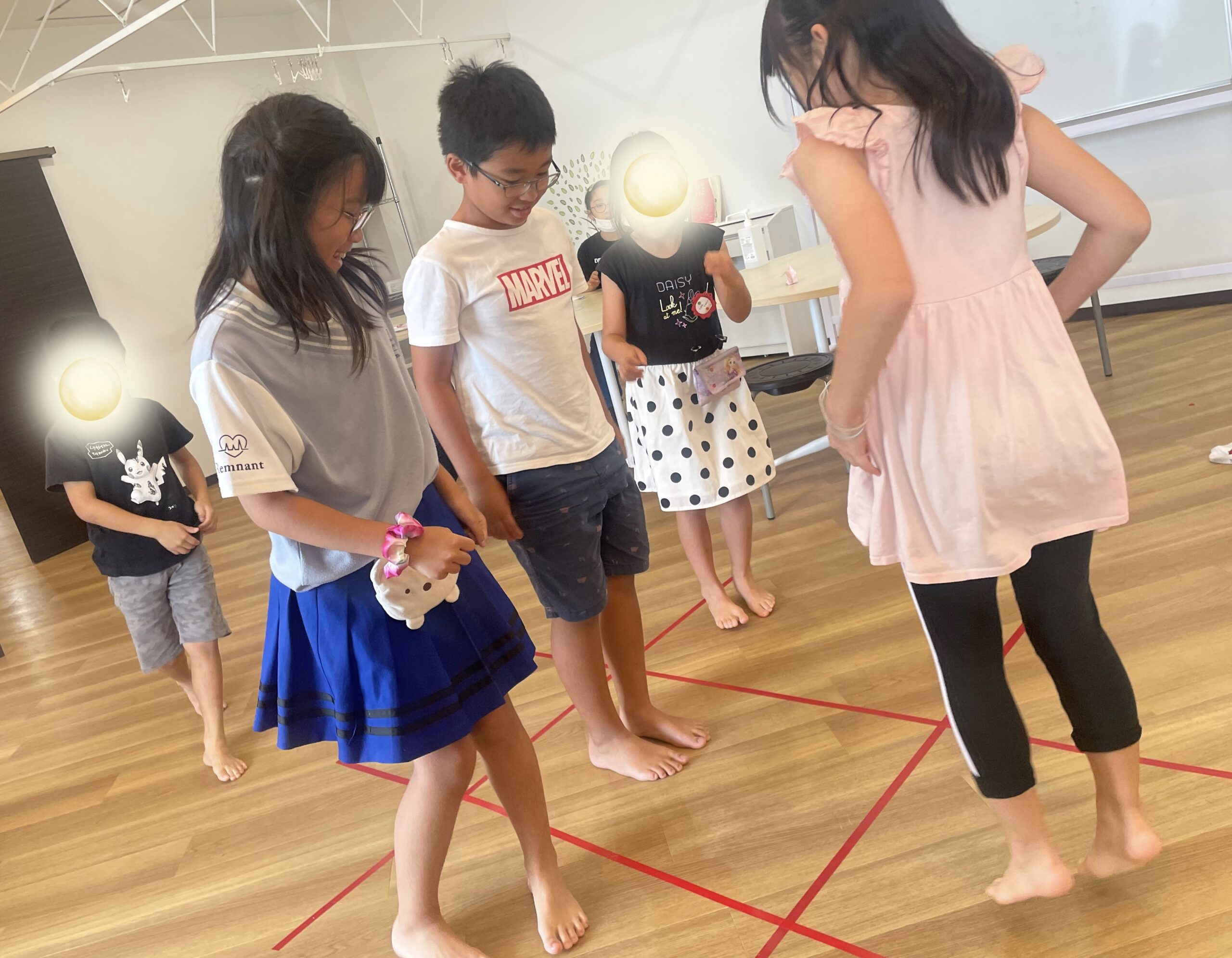 今日のアフタースクールのおやつは……パンに好きなジャムやチョコレートクリーム、バターやメープルシロップなどを付けて食べることにしましたよ! みんなが好きな味?は何か聞いてみると、やっぱりチョコレートクリームが人気な様子でした。 その後は、昨日外で遊んだ『9マス鬼ごっこ』がまたやりたい!!とのことで、今度はお部屋にビニールテープで線を作り始めることにしました。 ……