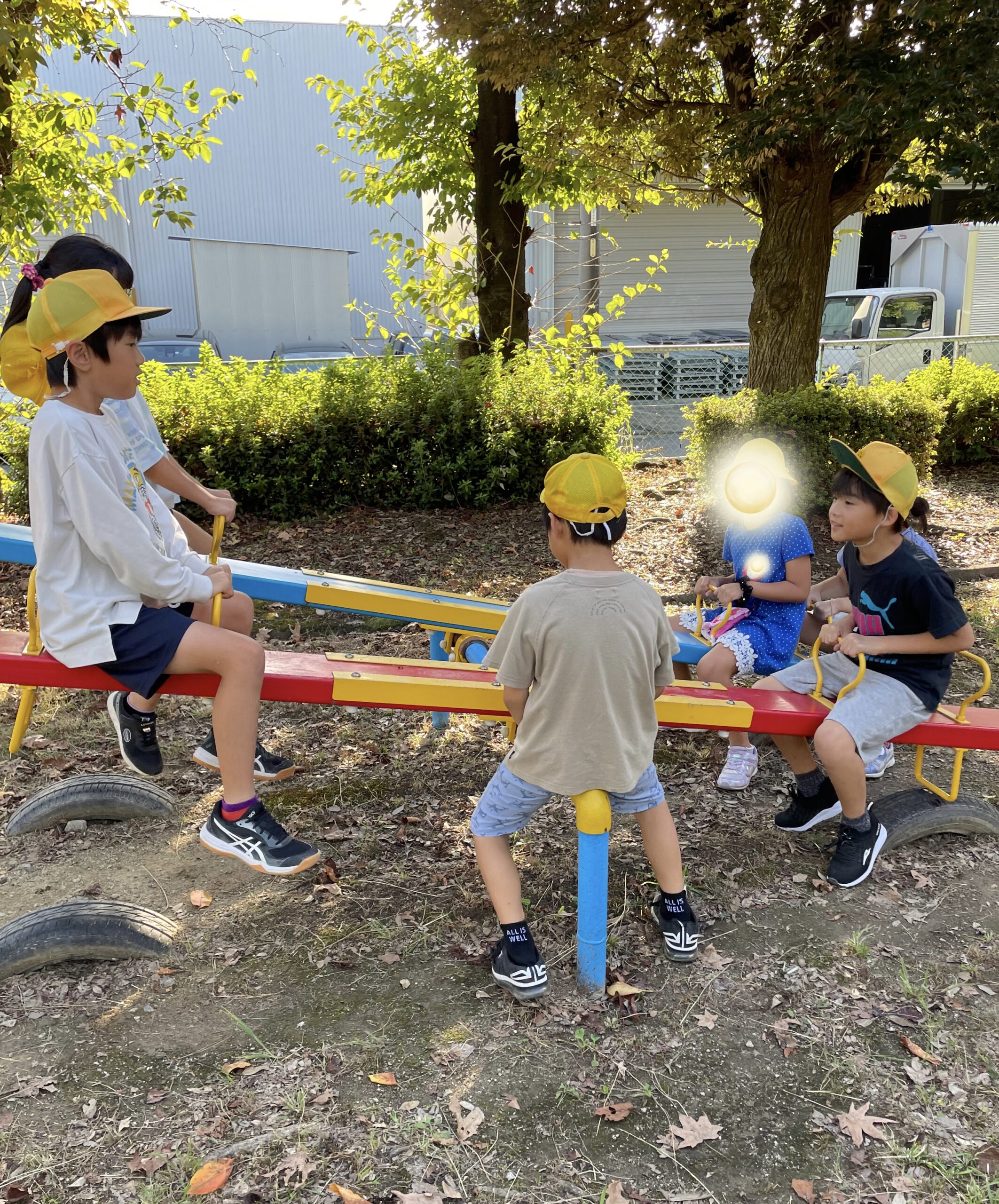 ずいぶん涼しくなってきて、外側遊びにはちょうど良い日です。みんなでおやつを食べた後に、『お外に行きたい!!』との声が多かったので、近くの公園に出かけました。 ブランコを勢いよくこいでいましたよ!!そして鬼ごっこもやることに!! 先生とのミニサッカーや、ドッヂボールも教えてもらいながら、楽しい時間を過ごす事ができました。 明日も公園にまた行けるかな……