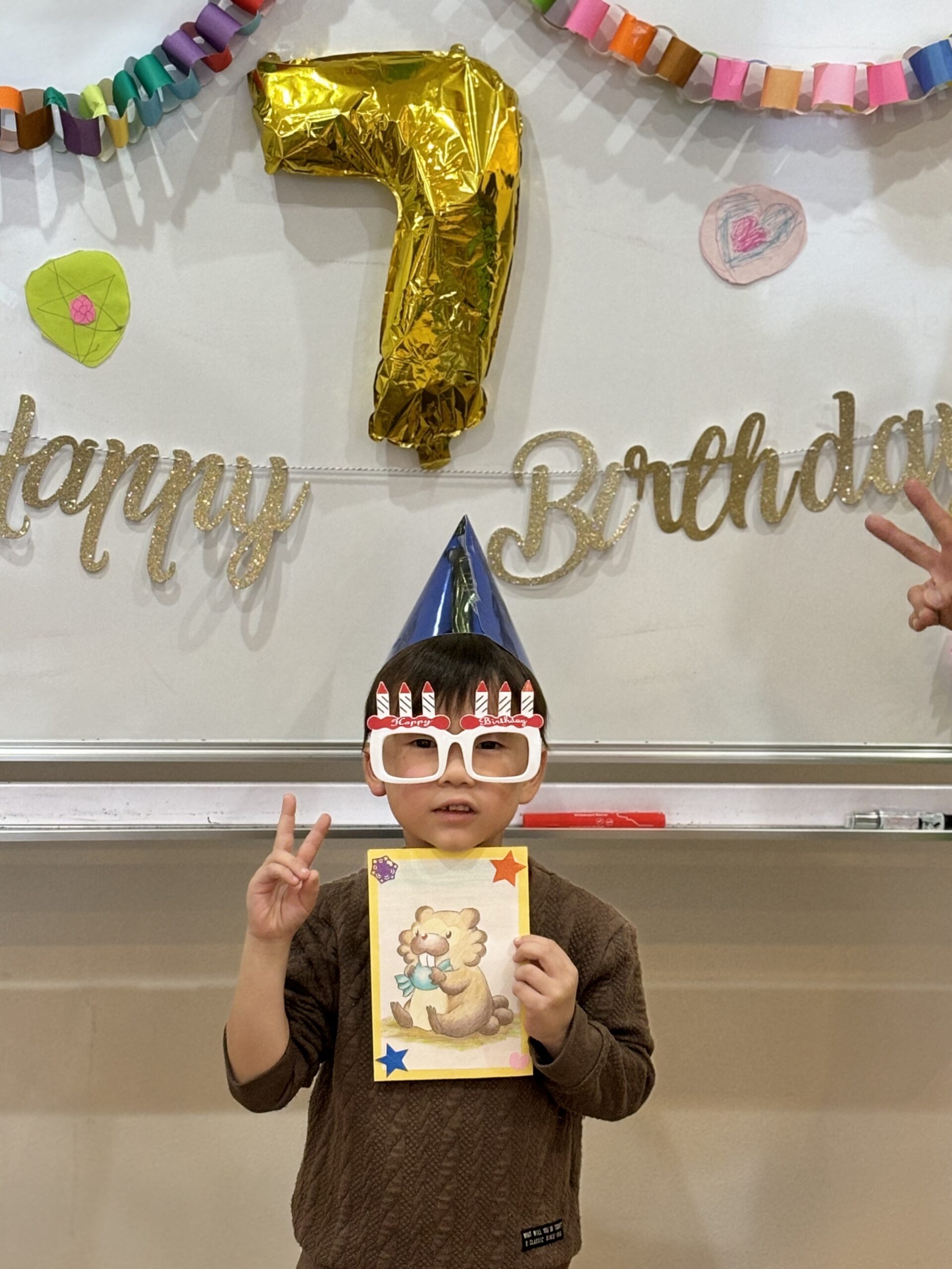 今日は12月生まれのお友だちのお誕生会です。 女の子たちがお誕生日会用のケーキのお手伝いをしてくれました! さぁ、お誕生日会の始まりです!! まず初めに先生たちからのメッセージカードをプレゼント🎁 そのあとはお友達からの質問タイム!🙋 「大きくなったら何になりたいですか?」 「好きな遊びは何ですか?」 「誕生日は何を食べたいですか?」 ……