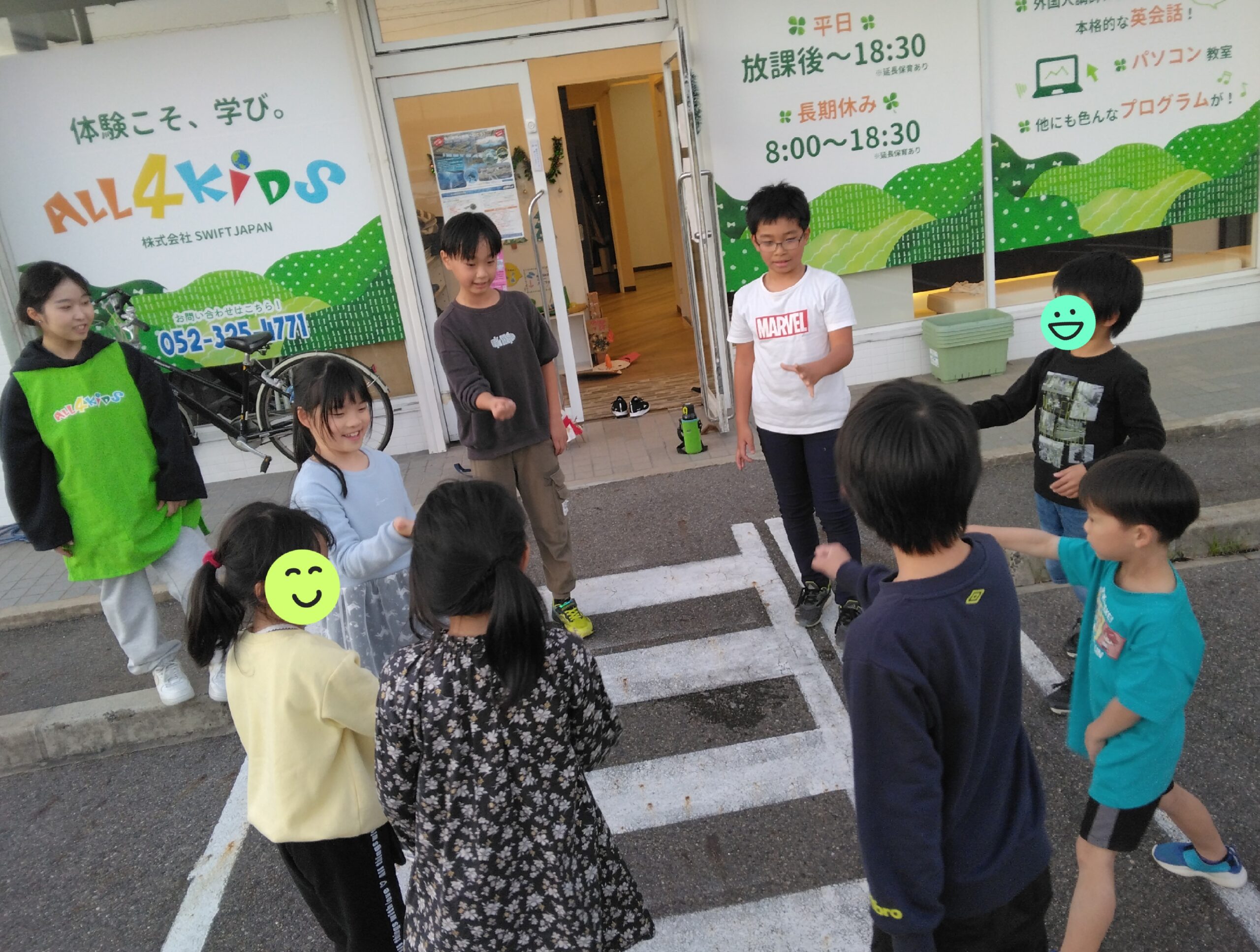 朝からの雨があがった後は肌寒い一日になりましたね。 今日はジェイムス先生のイングリッシュタイムがありましたよ!「Do you like~?」を教えて貰って、子供たちも先生に英語で質問をしていました! その後は子供たちのリクエストで駐車場で氷鬼をして遊ぶことに。 すばしっこいお友だちを捕まえられるかな? 「つか……
