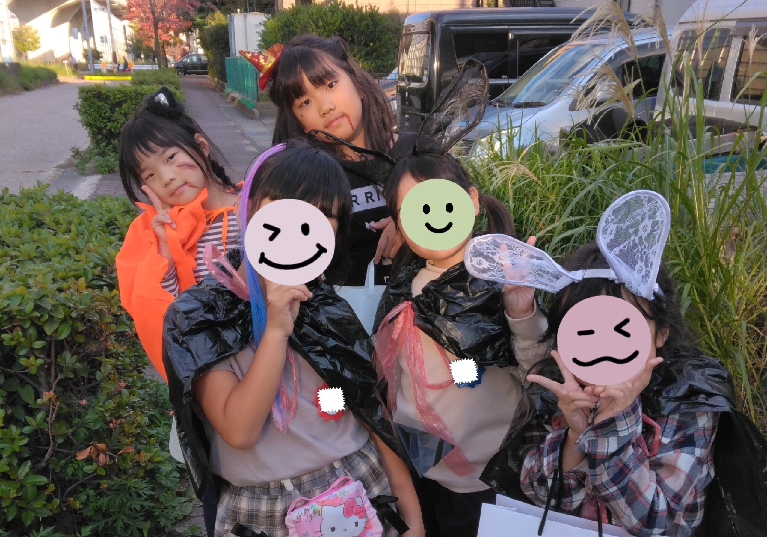 今日はハロウィンと言う事でアフタースクールのみんなも仮装をしてみましたよ! 「ハイチーズ!」 仮装をした後は、チャイルドケア勝川園やナーサリースクール勝川の子供たちにお菓子を持って訪ねに行きました!「Trick or Treat!」 なんと、アフタースクールの子供たちもお菓子を貰えてビックリ!!「えっいいの!?どうもありがとう!」 ……