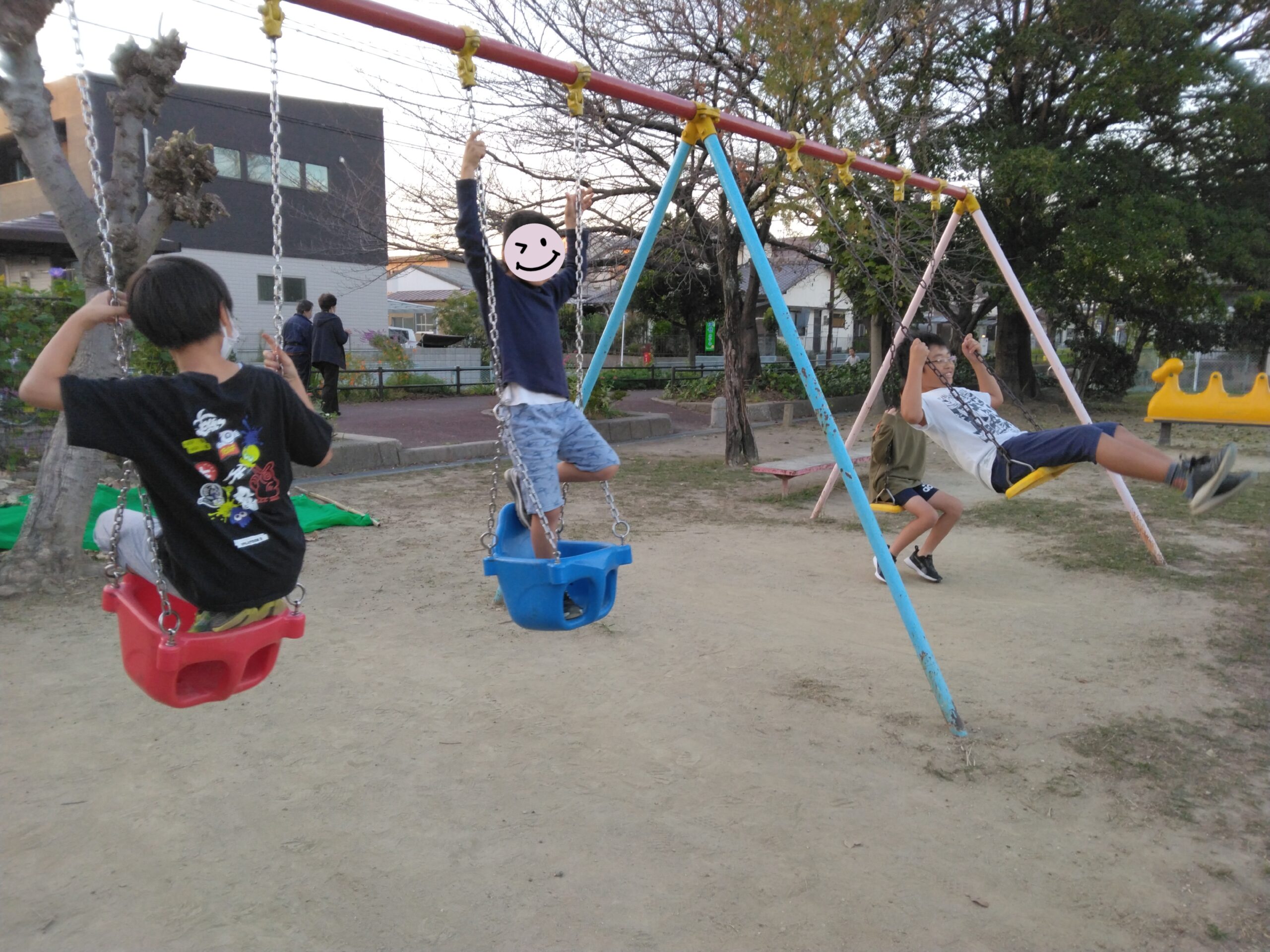 今日も学校帰りの子供たちは元気いっぱいです! 帰った後は宿題を済ませて、おやつタイム! 「先生、今日って公園に遊びに行ける?」 という事で、近くの公園に遊びに出かけました。 「みんな!ここに登ってみてよ!」 「先生見てみて!空中に浮いてるみたいでしょ!?」 みんなで走ったり、鬼ごっこをしたりと、暗くなるまで遊びま……