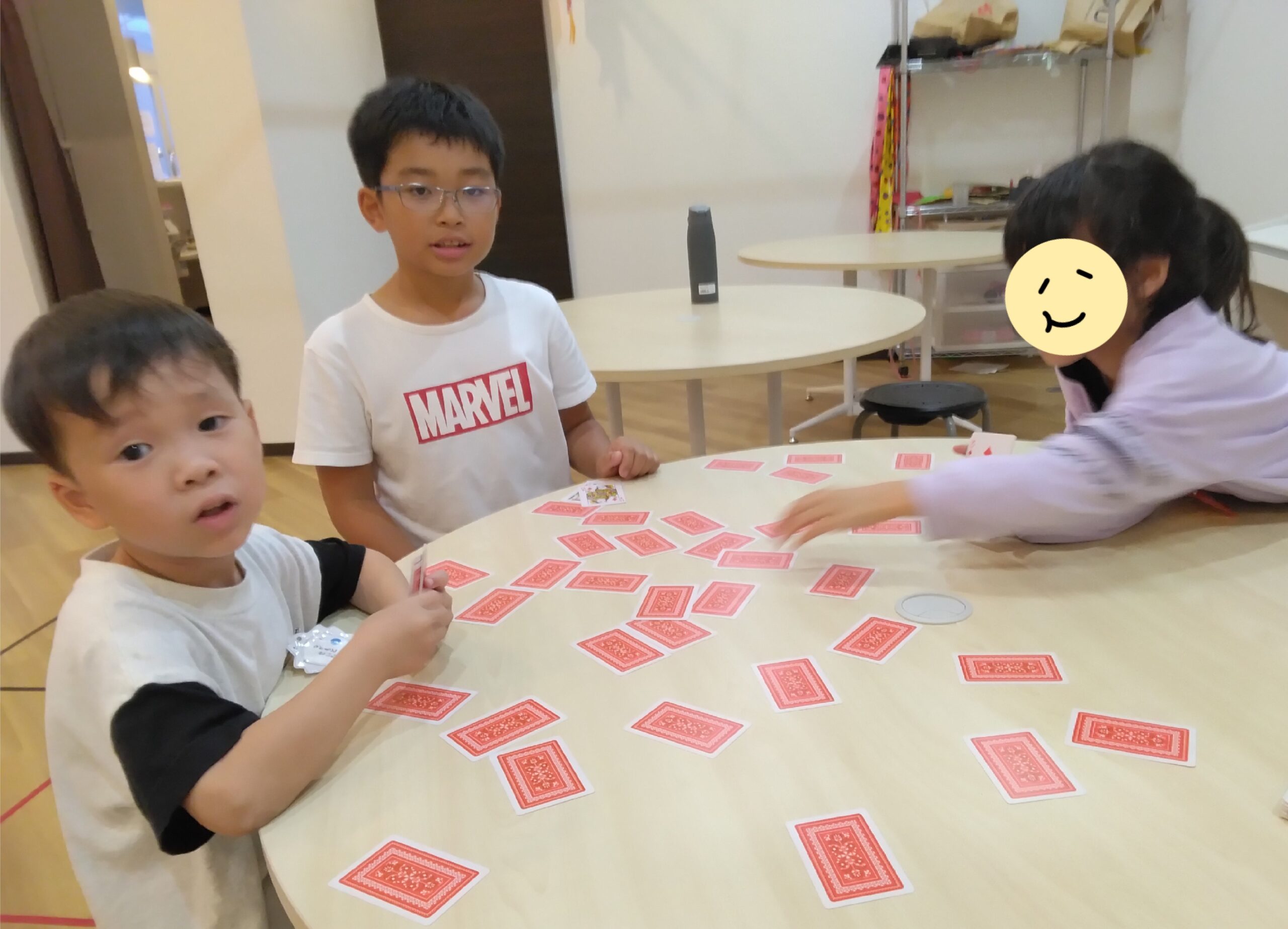 今日も学校から帰った後はすぐに宿題に取りかかる子供たちです。 宿題の後はみんなでおやつタイム! 雨が降って来たので、今日は室内でお絵かきをしたり、ゲームに夢中の様子! そのあとはトランプのババ抜きや神経衰弱をしたり、パソコンのタイピングソフトで入力タイムを競ったりしていました。 勝っても、負けても、友だちと一緒だと楽しいネ!……