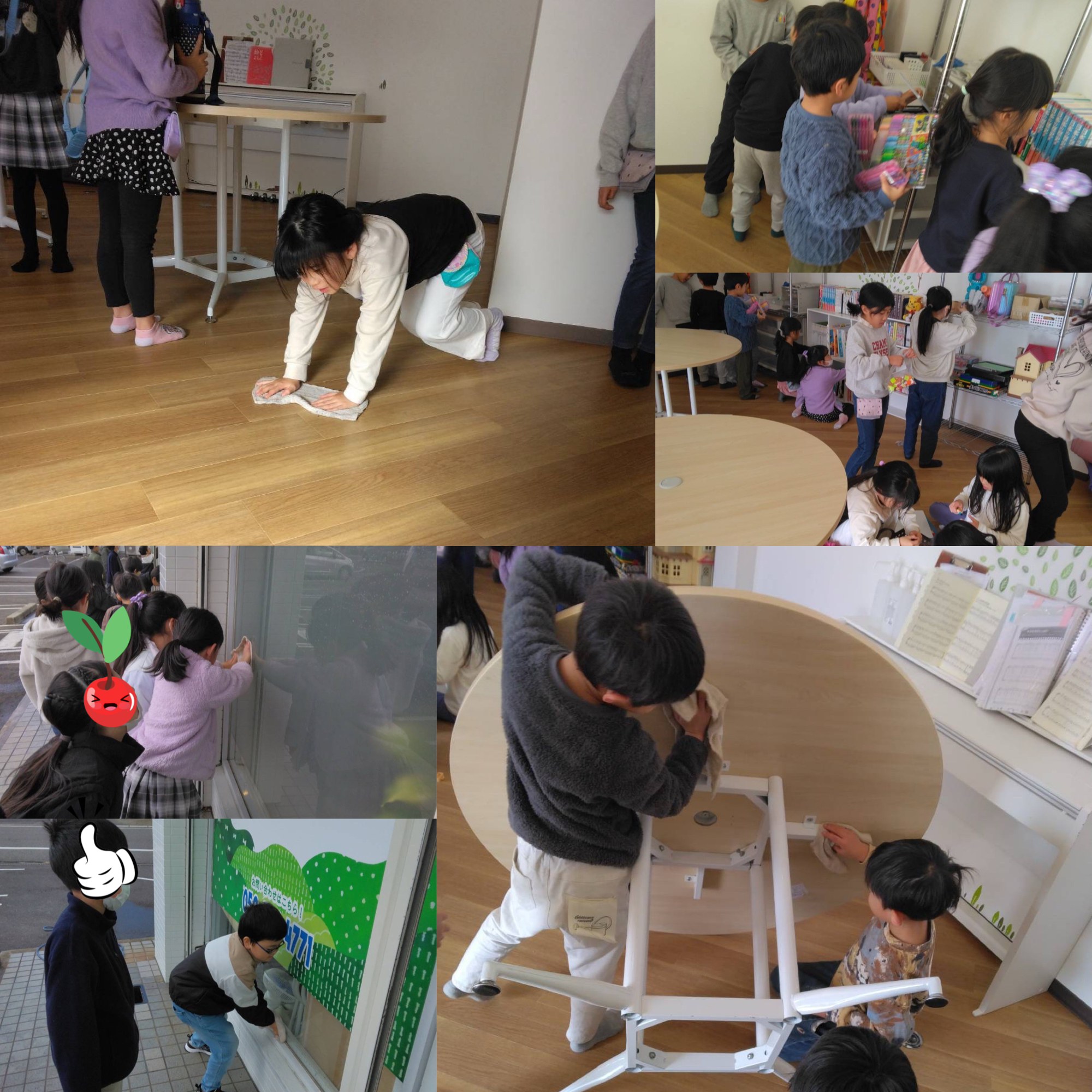 今日は師走らしく、寒いですね🥶 寒くても元気な子ども達は、朝から『あはは😆』と笑い声が響き渡ります。 午前中から大掃除🧹をしましたよ。 外回り、ガラス拭きをした後は、いつもみんなが使っているお部屋を掃除します。 隅々まで丁寧に拭いたり片付けたりと、みんなとっても張り切ってお掃除してくれました。 『こっちも‼️』など、声を掛け合いながら子ども達同士で気がつく所……