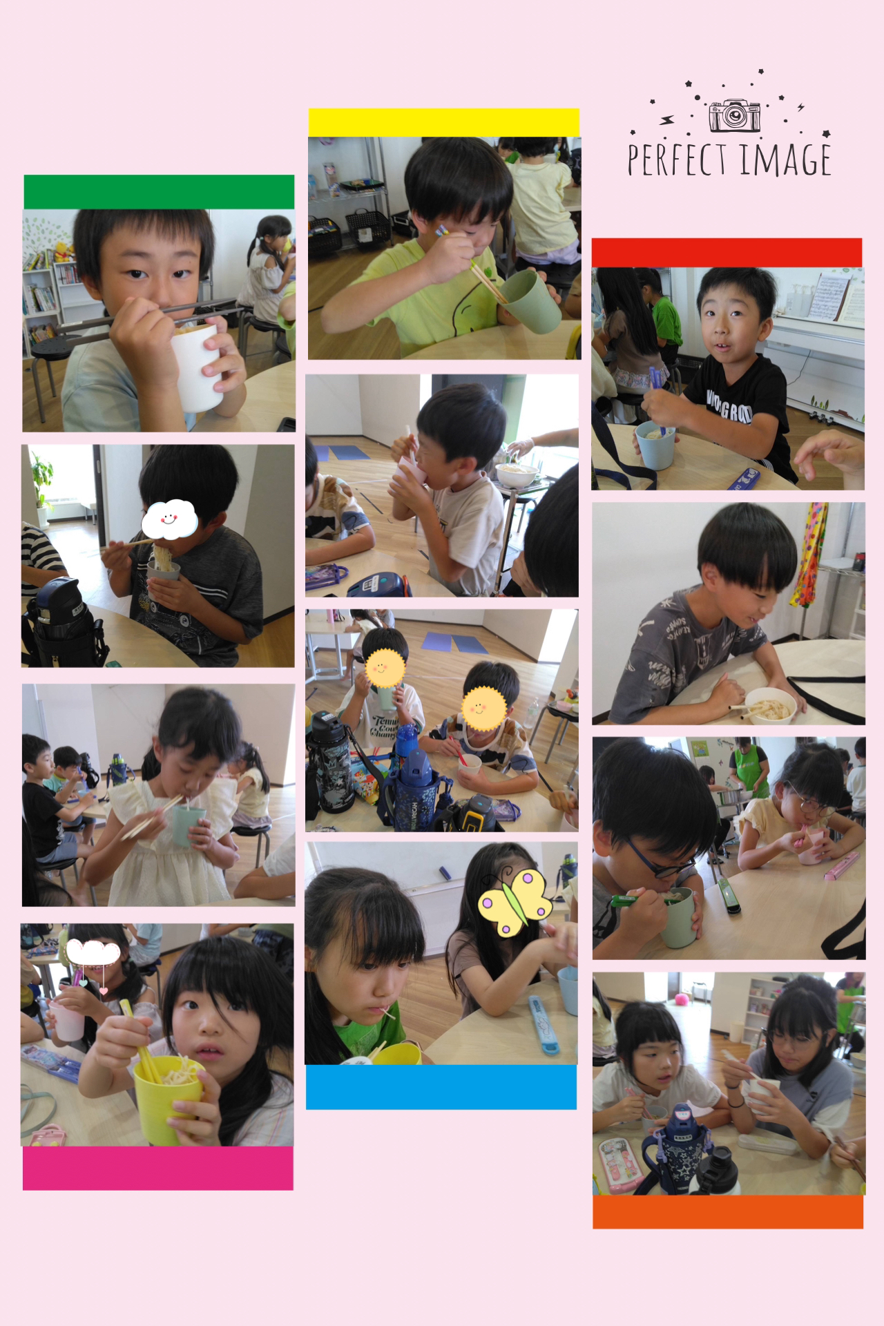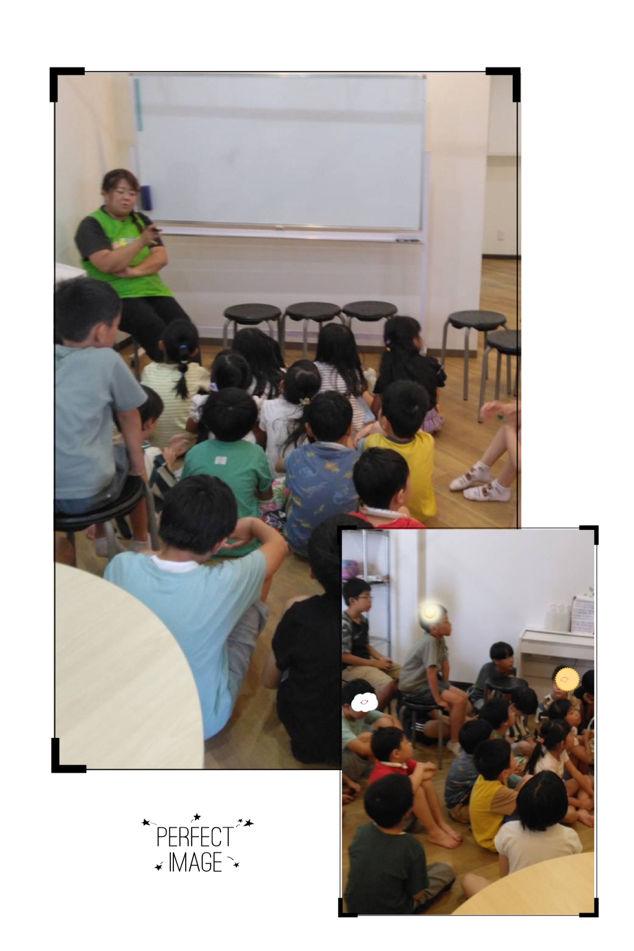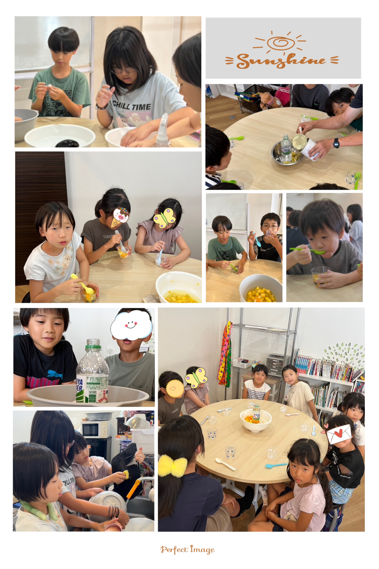 あるお友達が朝やって来たと思ったら、「先生、今日のおやつも昨日と同じのが食べたい😊」と言いに来てくれました。 昨日のメントスサイダーをとても気に入って貰えたようで、先生も嬉しい限りです😄 朝はいつも通りの宿題&読書タイムですが、子ども達の宿題もかなり進んでいる様で… こちらのお友達は絵の具を出してきて何を描いているのかなと思ったら… 夏休みにお出かけした海……