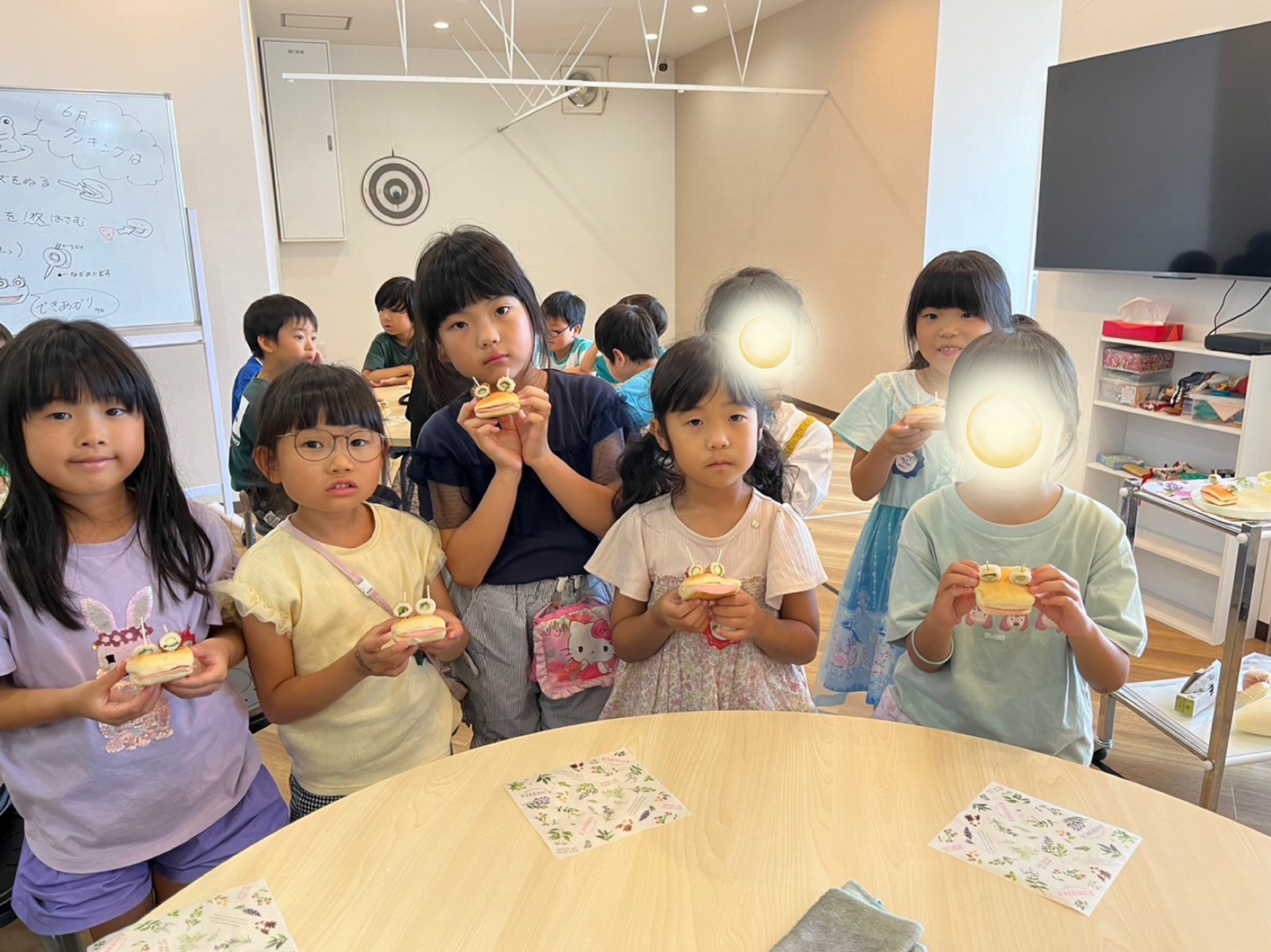 今日は「クッキングの日」と言う事で6月らしくロールパン🥖を使って可愛い「かえるパン」を作ってみました🐸 目の部分は竹輪に爪楊枝を刺したのですが、子ども達は真剣な表情で刺していましたよ🤭 かえるの口にはハムを挟み、美味しそうな目を付けたら、可愛い「かえるパン」の出来上がり! 「先生!見て見て!」 「かえるさん可愛い❤️」 「持って帰ってママ達に……