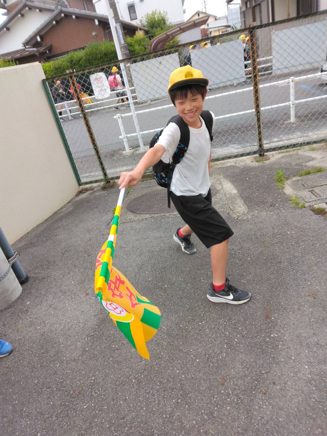 通学班の旗を5年生から預かった男の子が「班の呼吸 四の型…”見守り!”」と言って旗🚩を振っていたので思わずパチリ📸✨ 「通学班の安全はオレが守ってやるから!」 と頼もしい班長代理ですね😊 今日も宿題を済ませた後は、好きな遊びを始めました。 こちらはお絵描き🖍️に夢中の様で近づいてみると… 「コレ描いてたの!」と嬉しそうに見せてくれました😊 ……