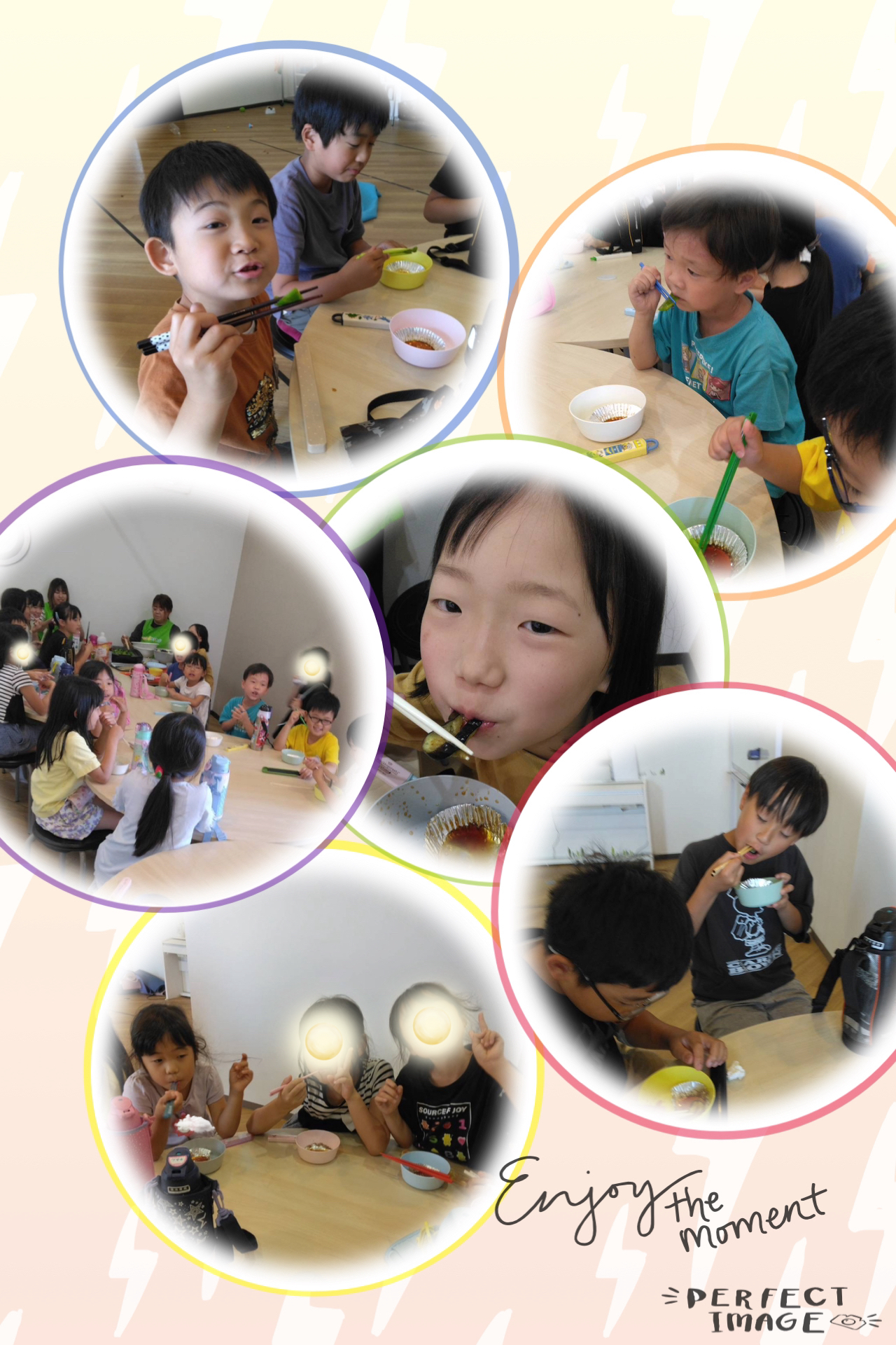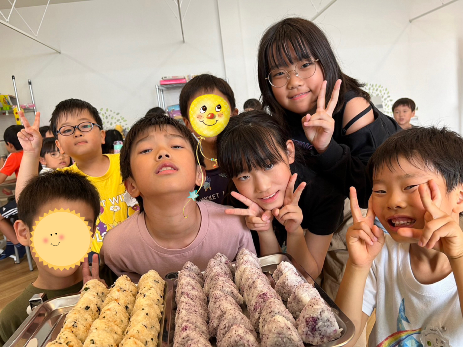「先生、暑くてお茶無くなっちゃった!」と学校からの帰り道でも水筒のお茶で水分補給をしていた子ども達です。 いつもの様に宿題を済ませると、ちょっと香ばしくて、美味しそうな香りが漂ってきましたよ😋 気になる今日のおやつは何だったかと言うと… ジャーン!おやきでした🎉 お友だちがご飯を平らにするのを手伝ってくれて、ホットプレートで香ばしく焼いたらハイ、出来上がり! ……