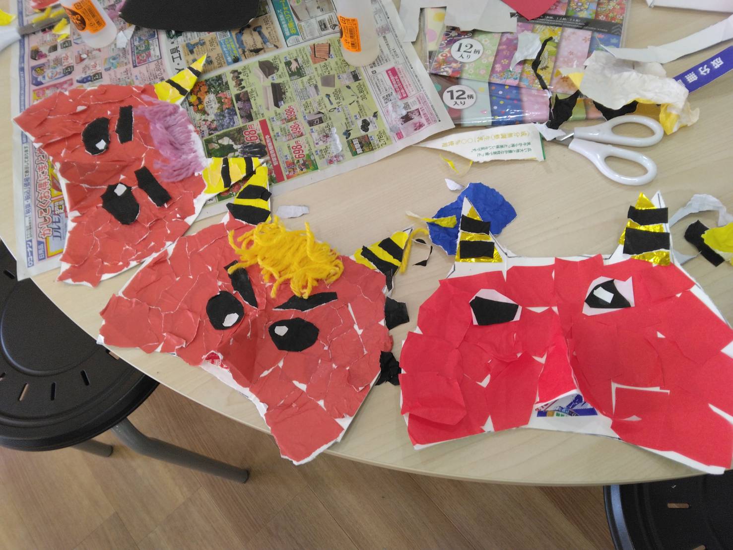 本日のアフタースクールは、節分の準備で製作を進めました。 牛乳パックを使って、貼り紙で色をつけます。 仕上がりはこんな感じです。 ここに牙をつけていきますよ!!それから、お三方も折ってみました。 こちらは女の子が男の子教えてあげています。 丁寧に教えてもらって喜んでいました❤️ そして女の子たちが突然、マッサージ屋さんのように先生をマッ……