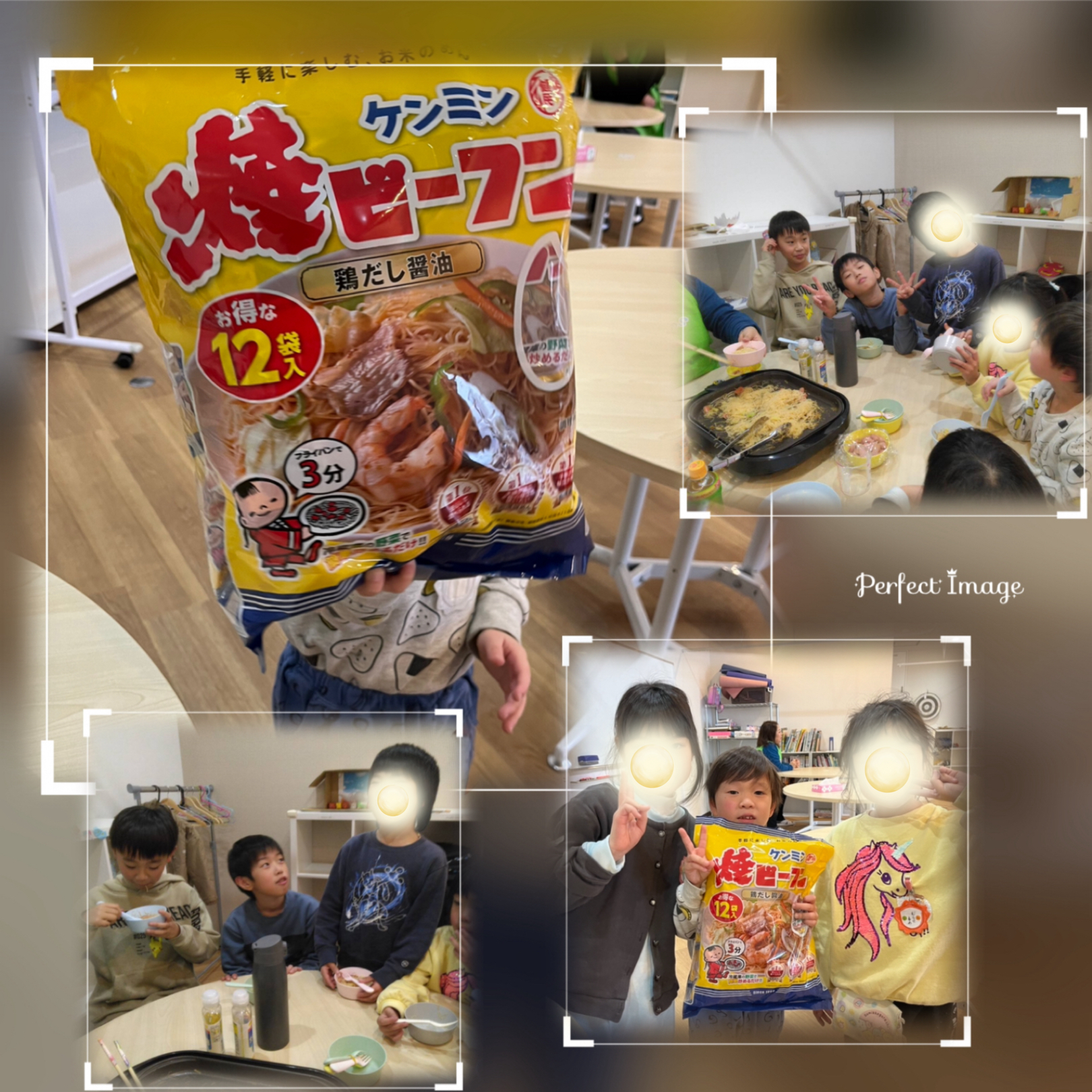 今日のおやつはなんと初の焼きビーフンです!! 初めてでしたが、美味しいと評判でしたよ。 たっぷり食べた後は久しぶりに駐車場で追いかけっこをしましたよ。 みんな凄く走っていました。ハァハァしてました(笑) 1年生チームは鬼のお面づくりの続きをしましたよ。 豆まきが楽しみですね。 ……
