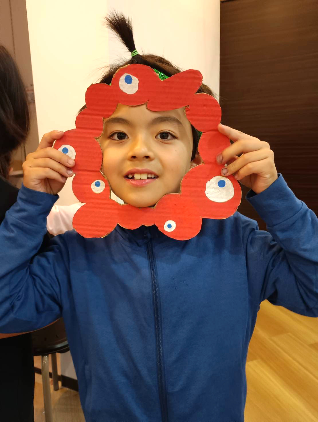 今日は一日激しい雨で、少し肌寒かったですね。 子どもたちも長袖や上着を着て いつもより少し暖かな服装でした😊 日課の宿題を済ませたら、おやつタイム🕒 今日はメープルジャムと練乳のパンにしてみました🍞 イングリッシュタイムの後のことです。 みんなが遊んでいると、 突然お友だちの笑い声が😂 何かな?と思って見てみると… なんと、そこには大……