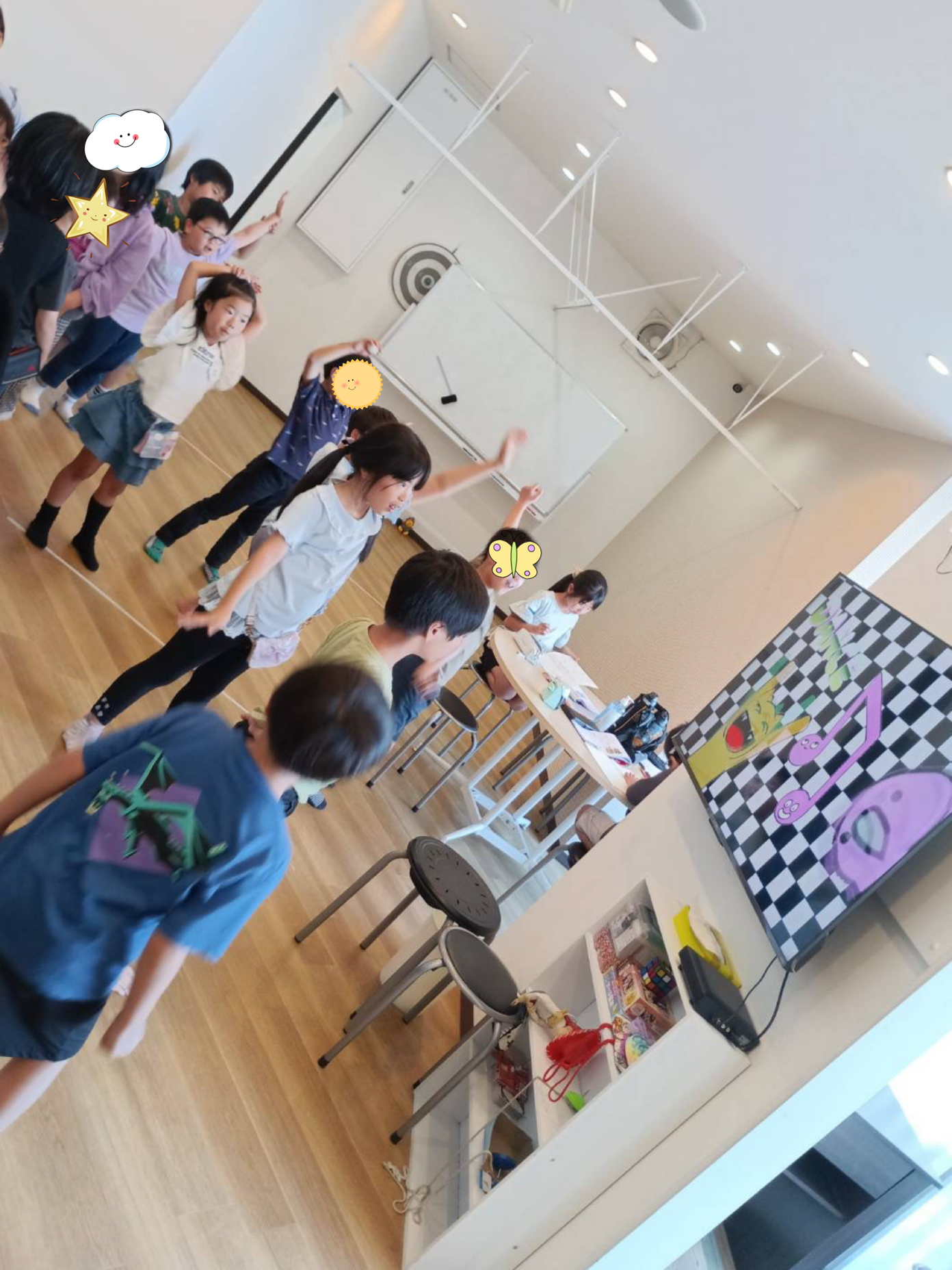 今日のイングリッシュタイムは いつもと少し違って 英語の曲に合わせてダンスを踊りました🕺 最初は少し恥ずかしそうに見ていたお友達も みんなが楽しそうに踊っているのを見ていると 体がウズウズしてきたのか 自然に体が動き出していましたよ🤭 またみんなでイングリッシュダンスを楽しみましょうね😊 ……