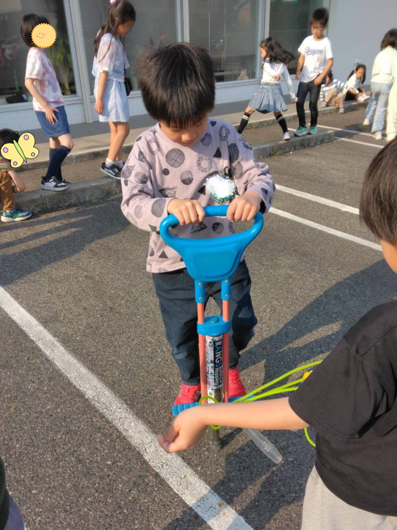 今日から一年生も給食が始まり、 宿題が出ていたお友だちもいたようです。 高学年のお友だちも帰って来て おやつを食べたあとは、駐車場で遊ぶことに 外遊びができるので、子どもたちはとても嬉しそう😊 チョークでお絵描き楽しんだのですが こちらにはとても上手なカービーが😊 こちらのお友だちはホッピングに挑戦中 ……