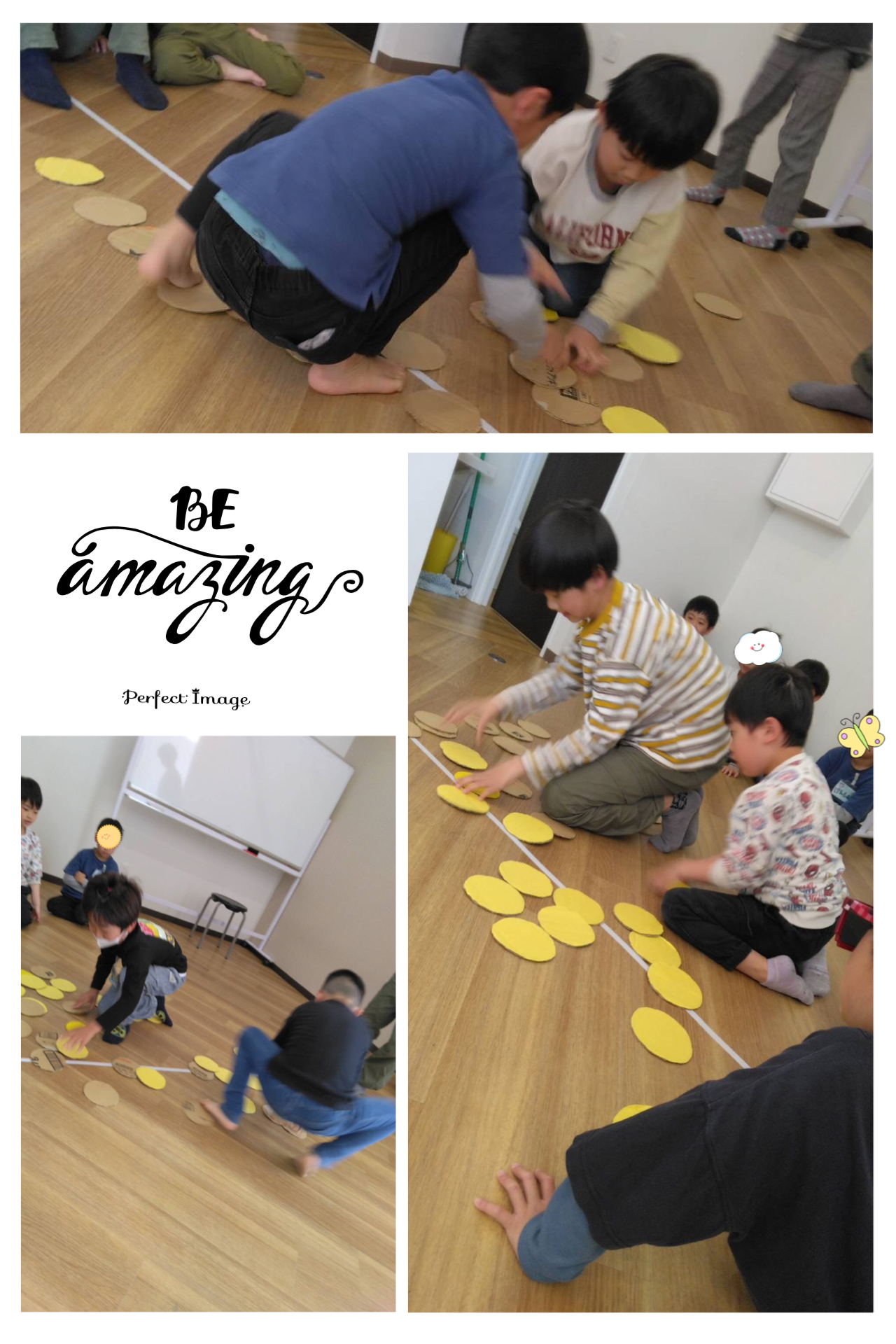 今日は月曜日、新しい一週間の始まりです。 朝から「おはようございます!」 と、新しく入ったお友だちも、元気な笑顔を見せてくれました😊 午前は床上オセロをして遊ぶことに… 床上オセロは対戦型ゲームで、制限時間内にオセロを自分の色に変えていくゲームです。 一枚でも多く自分の色にしたら勝ち🏅 ゆっくりめくっていると、相手の色に変えられてしまいます🤭 一……