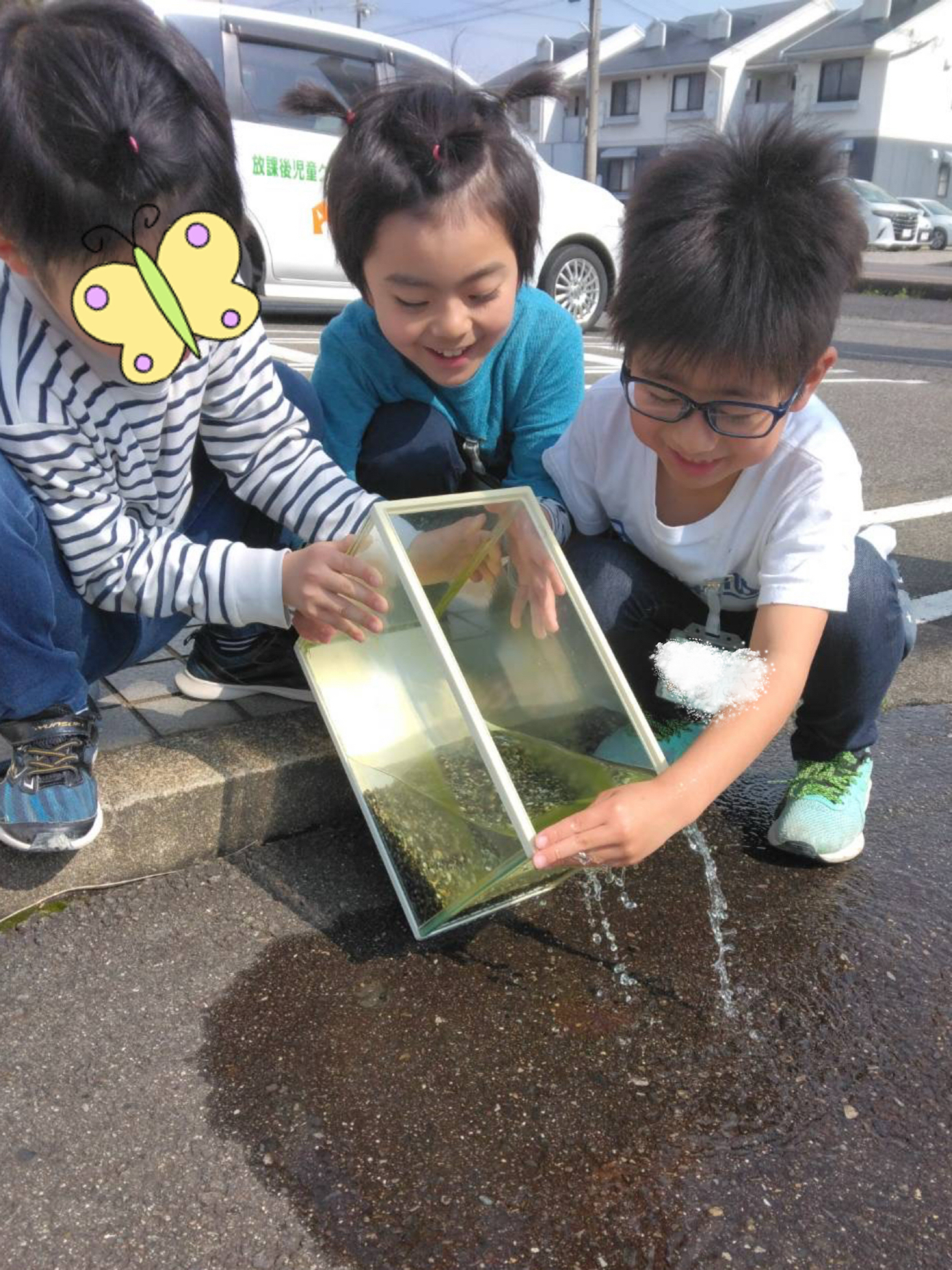今日から2年生以上のお友達は給食が始まったので 1年生が一番に帰ってきましたよ🎒 仲良くみんなでランチタイム🍱 少し遊んでいると、上級生のみんなが元気に帰ってきました! 宿題を済ませたあと、 こちらのお友だちが、メダカの水槽のお掃除を手伝い🐟 中にはお家でもメダカを飼っている子もいるそうで 上手な掃除の仕方を教えてくれていましたよ……