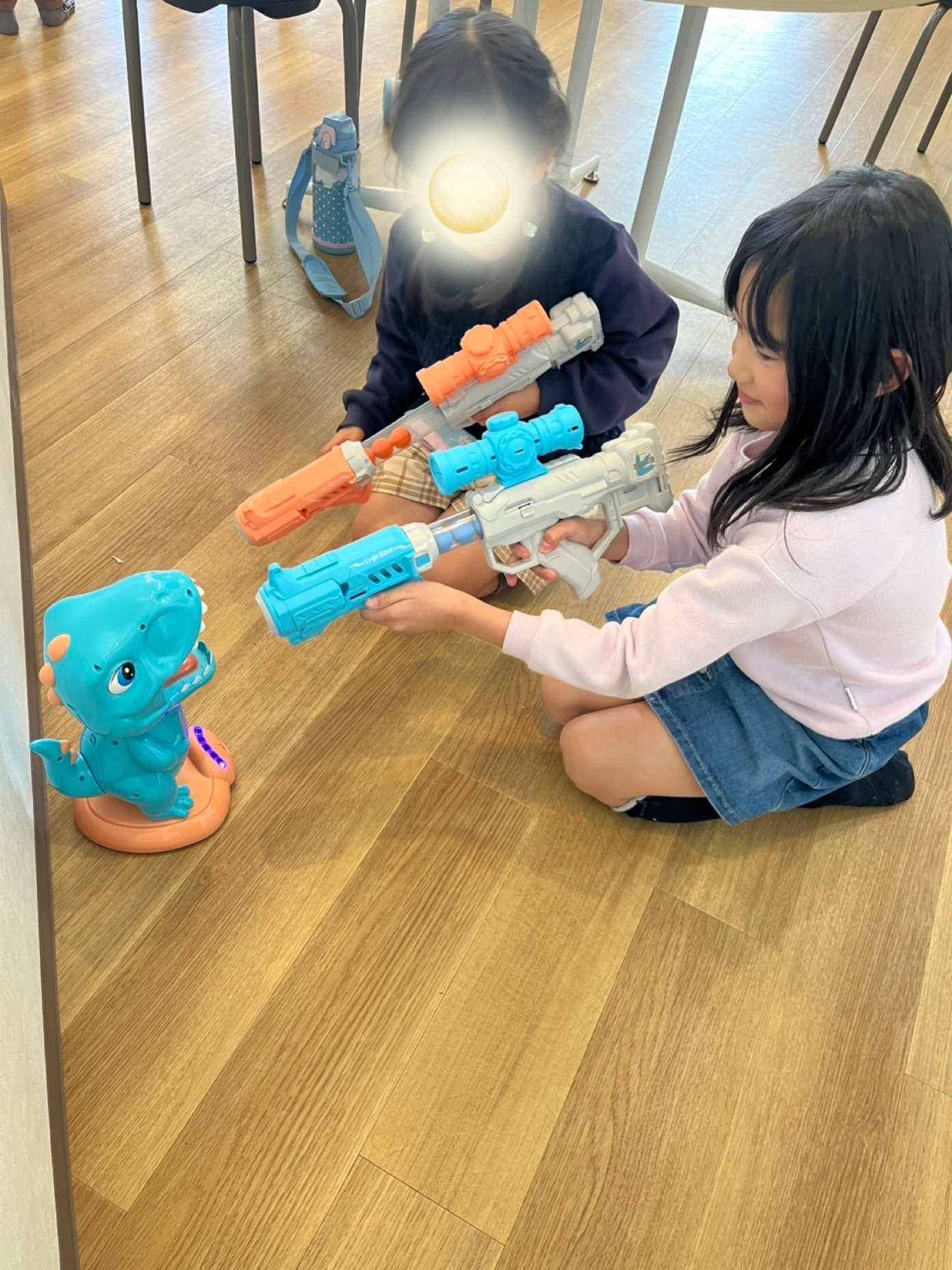 今日も元気にアフタースクールに「ただいまー!」 みんなの元気な声で賑やかなアフタースクールが先生達は大好きです😍 まずは宿題を済ませてたくさん遊びますよ😆 こちらの男の子達はドッヂボールのグループ分けをしています😊 4年生がみんなを仕切ってくれるのでスムーズに決めることが出来ていました😆 こちらは恐竜の口の中にボールを撃つおもちゃで遊んでいる様子😄 ……