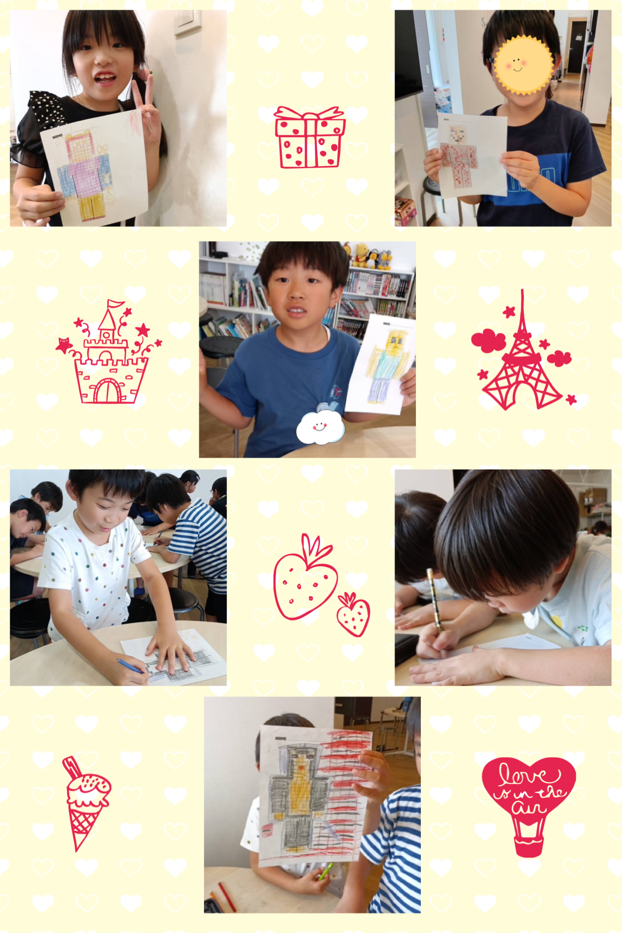 今日のイングリッシュタイムは何をしたかと言うと… みんなの大好きなマインクラフトに関係した言葉をお勉強🇬🇧 先生が質問すると、お友だちの手が次々と上がっていました😄 そのあとは、マイクラ風の絵をみんなで描いてみました🖼️ 中には自分で考えながら好きなキャラクターを描いているお友だちも😳 なんとこちらはエリック先生をマイクラにしてくれたそうです……